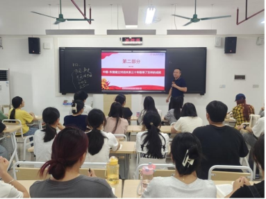 課堂上,闕勇平副校長從中國-東盟建立對話關(guān)系的歷史背景和歷程、中國-東盟建立對話關(guān)系三十年取得的成就和經(jīng)驗(yàn)方面進(jìn)行授課。并從設(shè)施聯(lián)通、經(jīng)貿(mào)合作、新興領(lǐng)域、人文交流、民生福祉等方面闡釋中國-東盟博覽會為何成為亞太區(qū)域合作中最為成功和最具活力的典范,成為推動構(gòu)建人類命運(yùn)共同體的生動例證。
