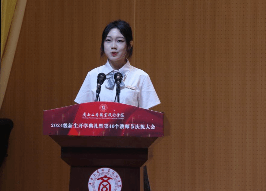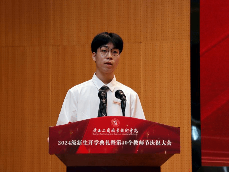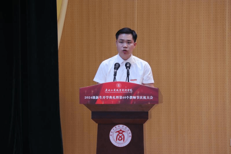 優(yōu)秀在校生代表李宇琦分享了在大學(xué)學(xué)習(xí)生活的感悟,鼓勵新同學(xué)要積極融入集體生活、做好學(xué)業(yè)規(guī)劃、勇于嘗試、敢于挑戰(zhàn),讓青春之花在廣商院綻放,創(chuàng)造出自己的精彩人生。