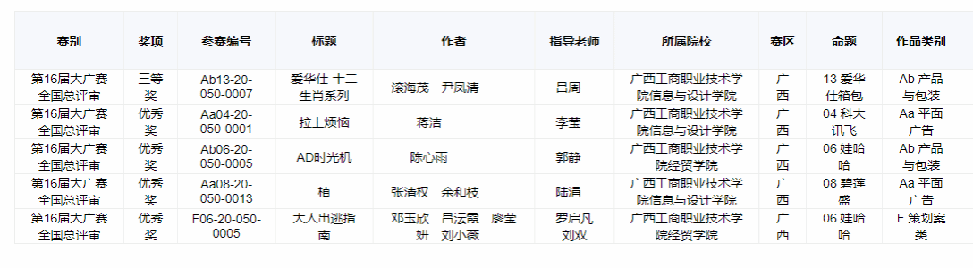 第16屆全國大學生廣告藝術(shù)大賽(廣西賽區(qū))獲獎截圖