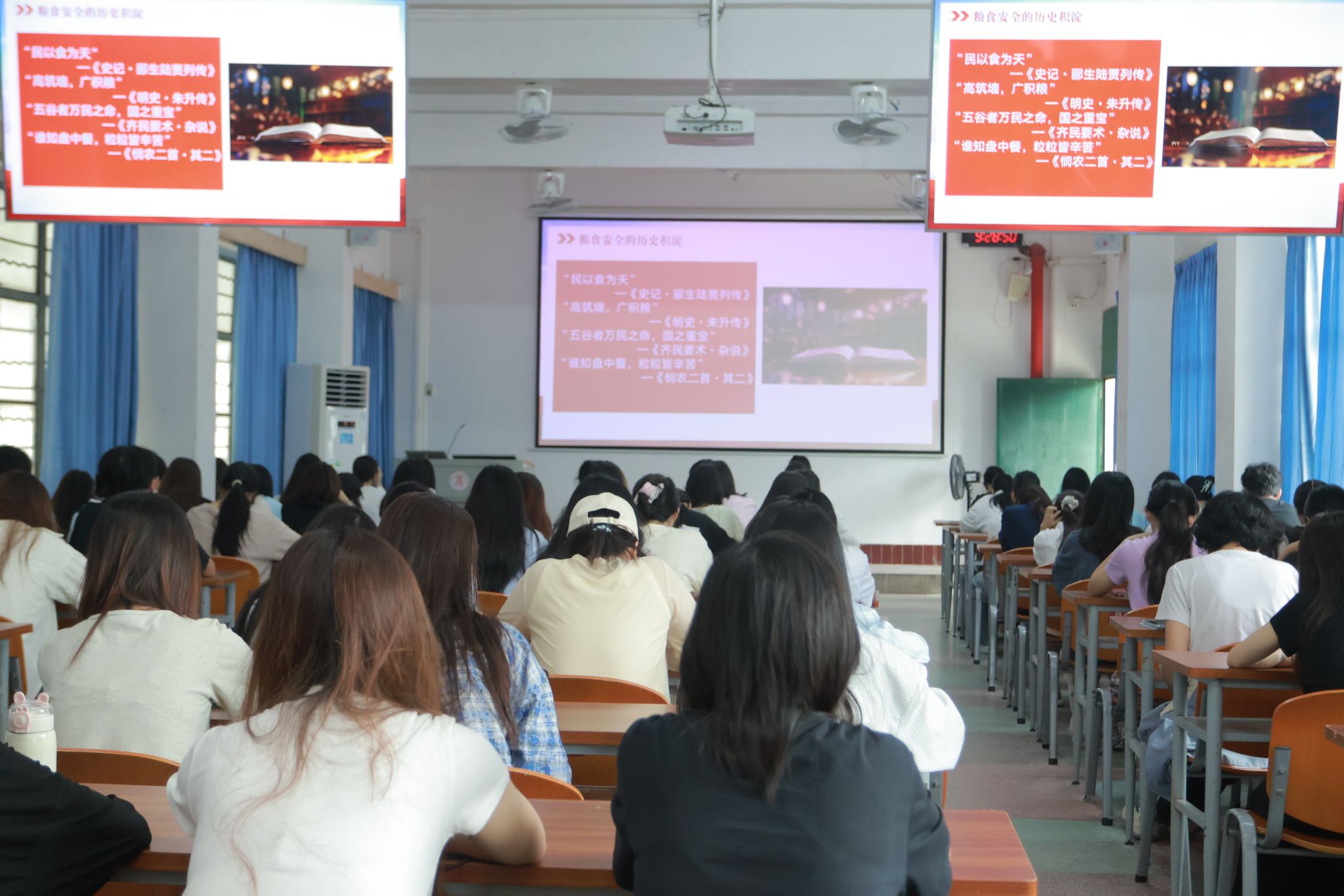 為深入學(xué)習(xí)貫徹黨的二十大和二十屆二中、三中全會(huì)精神,深入實(shí)施國(guó)家糧食安全戰(zhàn)略和鄉(xiāng)村振興戰(zhàn)略,健全糧食和食物節(jié)約長(zhǎng)效機(jī)制,增強(qiáng)師生糧食安全意識(shí),10月15日,學(xué)校開展2024年世界糧食日暨全國(guó)糧食安全宣傳周主題教育活動(dòng),學(xué)校校長(zhǎng)劉進(jìn)在武鳴校區(qū)做專題講座,講座以“守護(hù)‘糧’心,法治護(hù)航”為主題,同時(shí)在鵬飛校區(qū)、中堯校區(qū)設(shè)分會(huì)場(chǎng)。