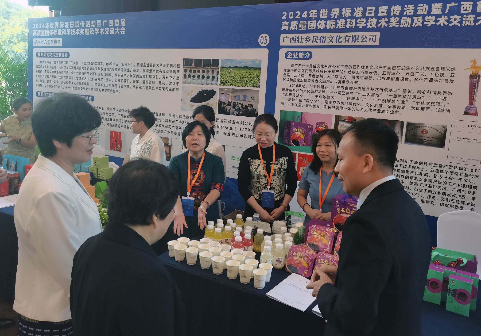 (中國(guó)標(biāo)準(zhǔn)化協(xié)會(huì)、廣西科學(xué)技術(shù)協(xié)會(huì)、廣西標(biāo)準(zhǔn)化協(xié)會(huì)等領(lǐng)導(dǎo)到預(yù)制五色糯米飯展區(qū)參觀(guān)并指導(dǎo))