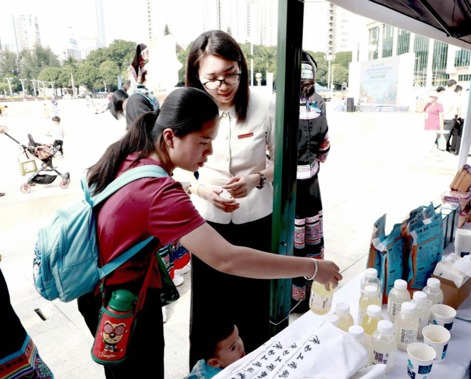 我校展位展出的五色糯米飯、五色糯米酒、生榨米粉、茉莉花茶等產(chǎn)品吸引了在場眾多市民嘉賓的參觀品嘗,我校師生們熱情地向現(xiàn)場市民和嘉賓講解,電子商務(wù)專業(yè)學生還現(xiàn)場通過直播方式介紹我校展出產(chǎn)品,充分展現(xiàn)了我校師生良好的精神風貌,得到了現(xiàn)場觀眾的一致好評。