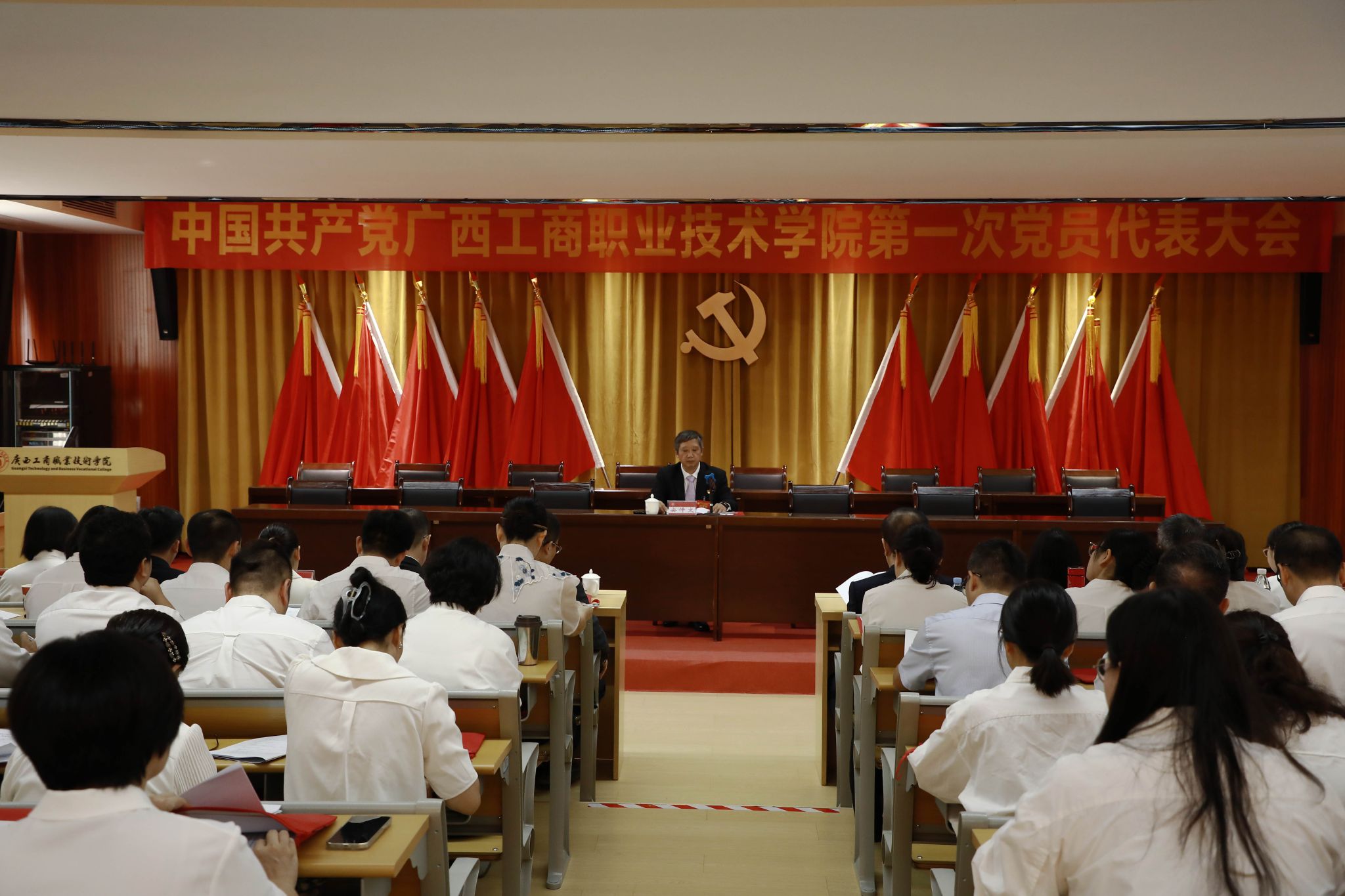 踔厲奮發(fā)謀發(fā)展,勇毅篤行向未來(lái)。10月22日上午,中國(guó)共產(chǎn)黨廣西工商職業(yè)技術(shù)學(xué)院第一次黨員代表大會(huì)在學(xué)校鵬飛校區(qū)隆重開幕。李維同志代表中國(guó)共產(chǎn)黨廣西工商職業(yè)技術(shù)學(xué)院委員會(huì)作題為《再接再厲、奮發(fā)圖強(qiáng),為譜寫新時(shí)代新征程教育強(qiáng)國(guó)建設(shè)的廣商院篇章不懈奮斗》的報(bào)告。劉進(jìn)同志主持開幕會(huì)。