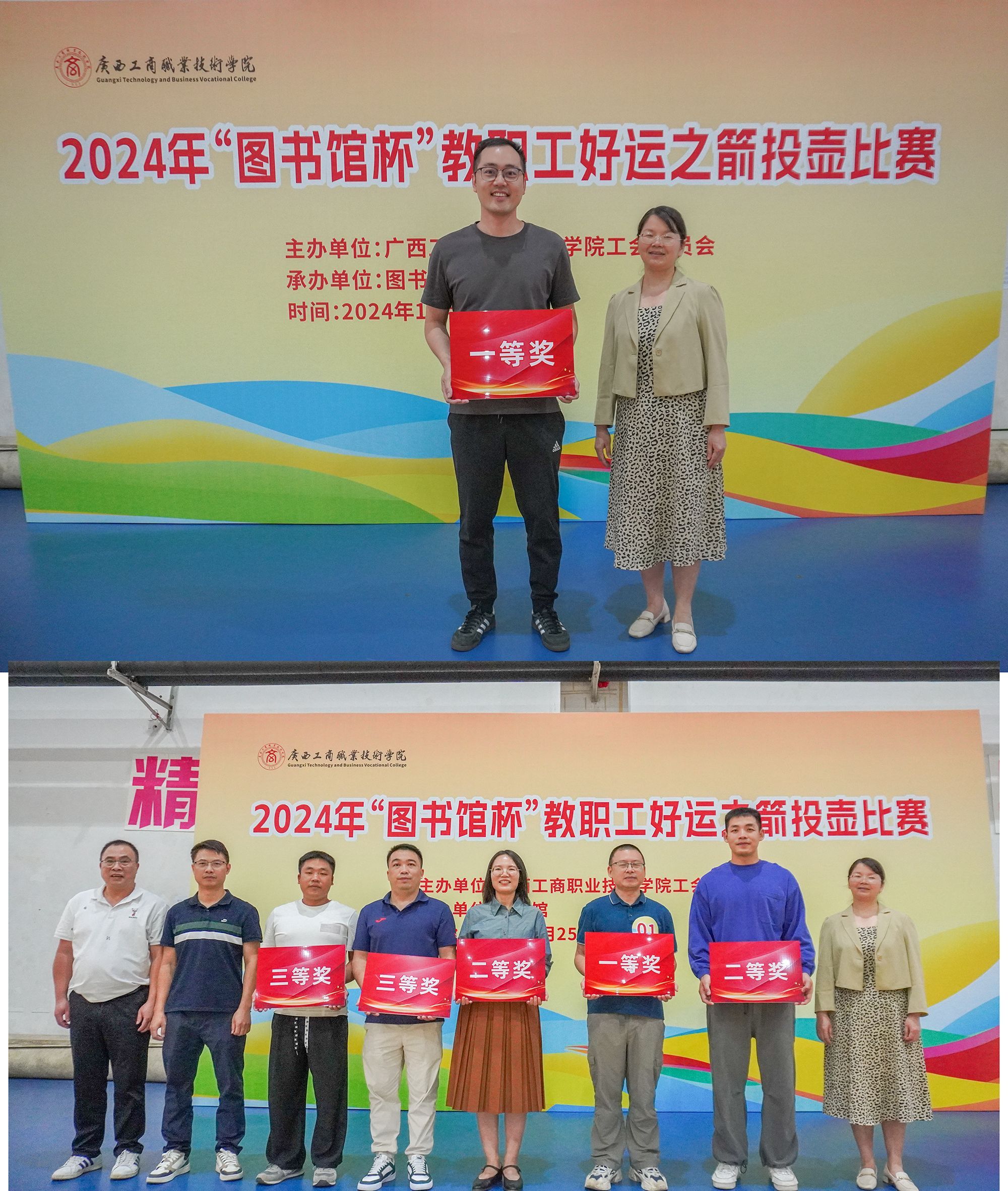 10月25日,學(xué)校在鵬飛校區(qū)舉行“圖書館”杯教職工好運(yùn)之箭投壺比賽活動。本次比賽由學(xué)校工會主辦,圖書館承辦,全校共有8個工會分會和9個直屬工會小組組織參賽,近400余名教職工會員參加。學(xué)校副校長鄭華參加活動并宣布比賽開始。