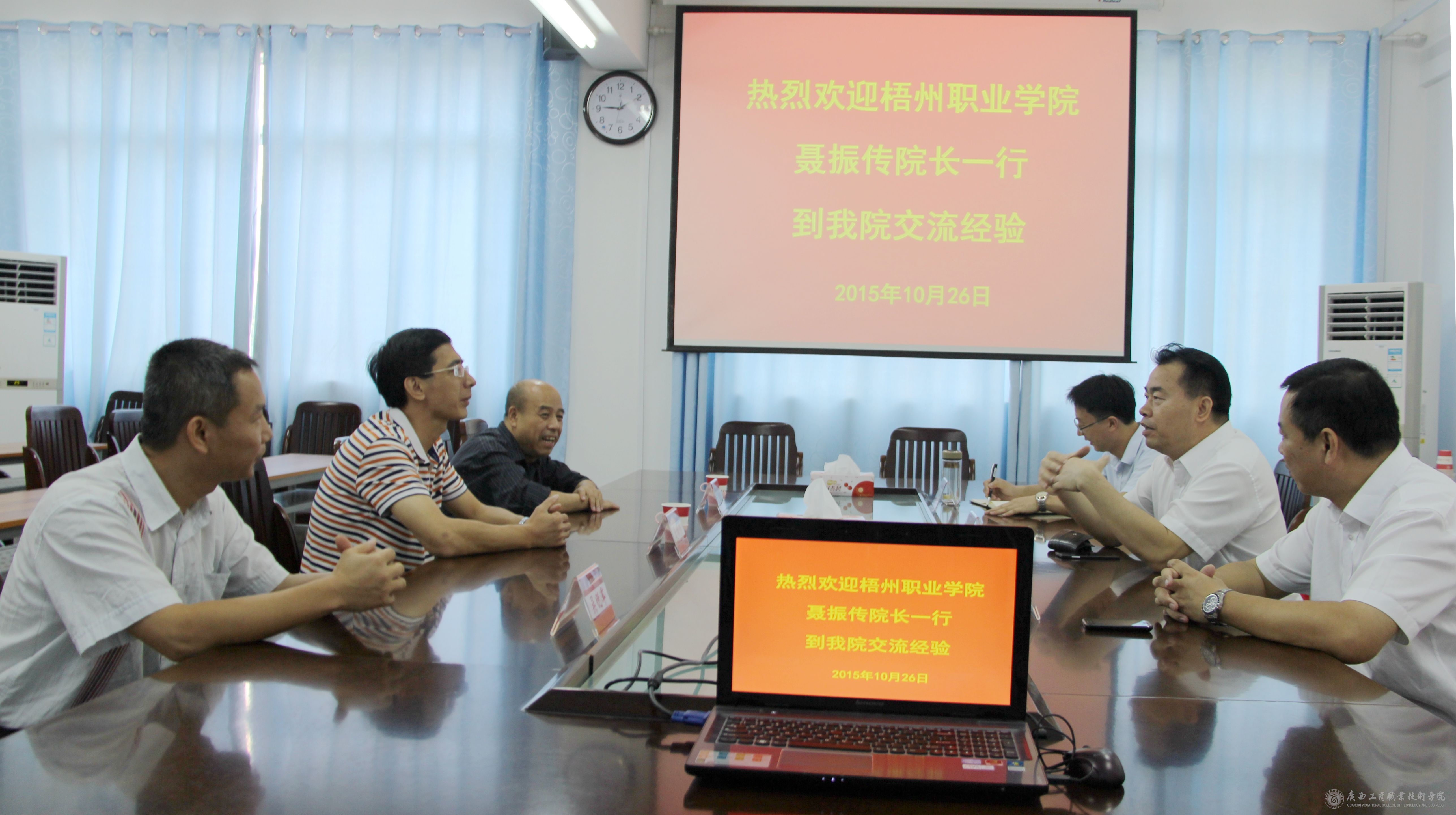 2015年10月26日上午9時,梧州職業(yè)學院聶振傳院長一行3人到我院考察交流。我院黨委書記覃武云、院長陳杰熱情接待了聶振傳院長一行。