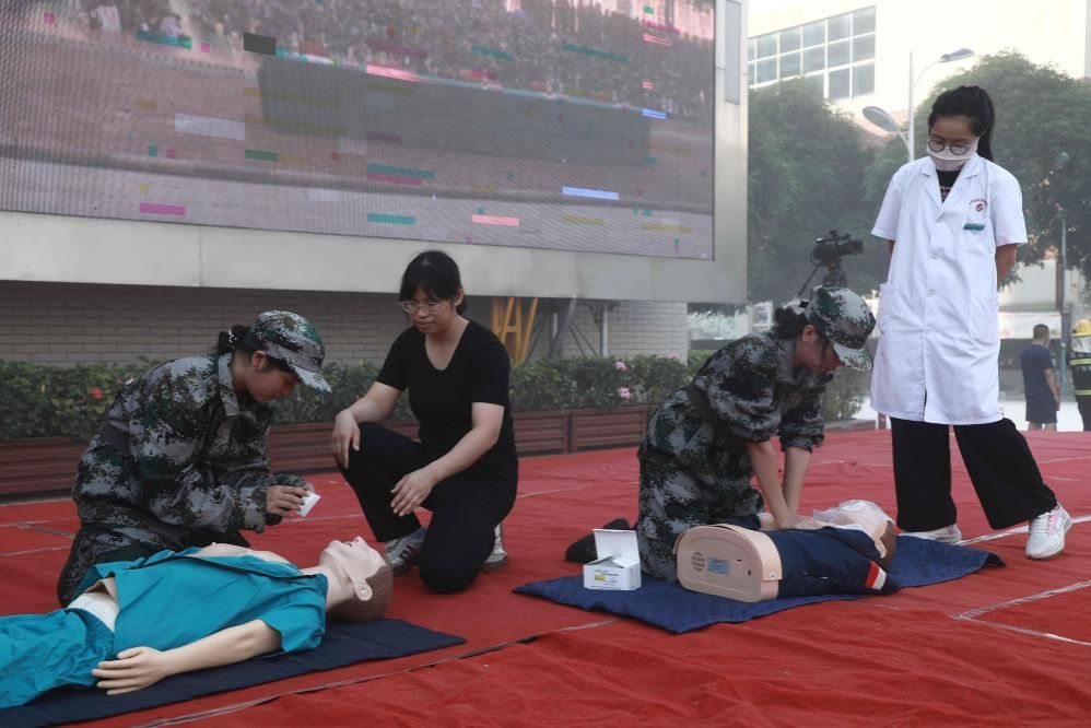 現(xiàn)場還開展了消防逃生救援技能培訓(xùn),包括滅火器使用操作、煙霧帳篷逃生、心肺復(fù)蘇、繩結(jié)逃生方法等內(nèi)容。