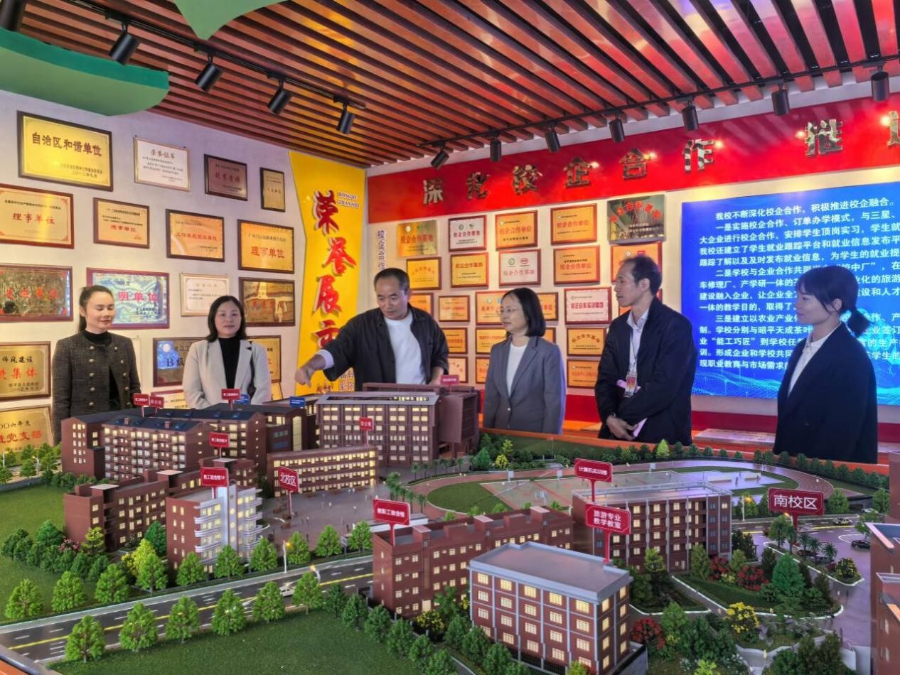 座談會后,韋云鳳一行參觀了昭平縣職業(yè)技術(shù)學(xué)校的圖書閱覽室、校史榮譽室、茶文化展廳和校企合作雙主體辦學(xué)產(chǎn)業(yè)化實訓(xùn)基地等,進(jìn)一步了解該校的發(fā)展規(guī)劃、辦學(xué)條件和校企合作成果。