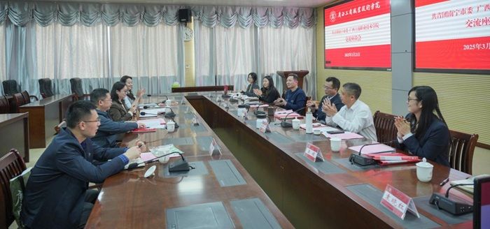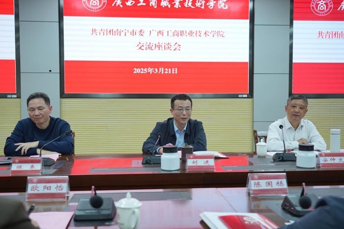 座談會(huì)上,劉進(jìn)校長(zhǎng)代表學(xué)校對(duì)共青團(tuán)南寧市委一行表示熱烈歡迎,并詳細(xì)介紹了學(xué)校辦學(xué)歷史與育人特色。他表示,學(xué)校將以此次合作為契機(jī),與共青團(tuán)南寧市委共筑“紅色育人”新高地、共建“政-企-校”聯(lián)動(dòng)機(jī)制和共育青年成長(zhǎng)“生態(tài)圈”,將糧食安全、人工智能等特色領(lǐng)域融入人才培養(yǎng),為首府經(jīng)濟(jì)社會(huì)發(fā)展輸送更多高素質(zhì)青年人才。