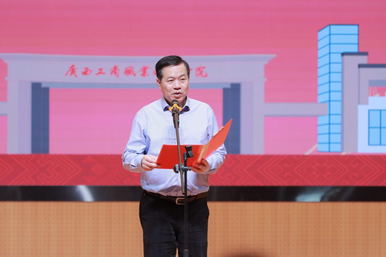 李維書記在開幕式現(xiàn)場致辭并宣布活動正式開幕。他表示,一年一度的“廣西三月三”民族團結(jié)進步教育活動,是學(xué)校深入開展鑄牢中華民族共同體意識教育的特色平臺,也是學(xué)校深耕文化育人沃土、厚植愛國主義情懷,構(gòu)建立德樹人新生態(tài)新格局的重要組成部分。長期以來,學(xué)校黨委圍繞鑄牢中華民族共同體意識這條主線,將鑄牢中華民族共同體意識融入辦學(xué)治校、教書育人全過程各方面,形成了“機制上優(yōu)化、教育上深化、宣傳上強化、氛圍上融化”的民族團結(jié)進步創(chuàng)建工作格局。廣大師生積極擔(dān)負起新時代民族團結(jié)進步事業(yè)實踐者、推動者和守護者的責(zé)任。他特別提到,我校學(xué)生創(chuàng)作的以少數(shù)民族與“非遺”傳承為主題的作品,獲得兩項國家級榮譽以及多項省部級榮譽,充分展現(xiàn)了廣商院學(xué)子投身民族團結(jié)進步事業(yè)的卓越風(fēng)采。他號召各族師生積極參加系列活動,加強交流交往交融,進一步鑄牢中華民族共同體意識,增進文化認(rèn)同和民族自豪感,為傳承中華優(yōu)秀傳統(tǒng)文化、推動民族團結(jié)進步事業(yè)、建設(shè)鑄牢中華民族共同體意識示范區(qū)唱響廣商院之聲。