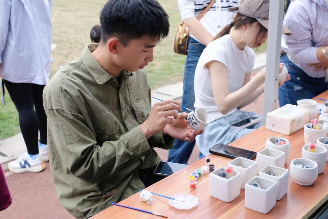 此外,開幕式還舉辦了民族文化體驗活動,師生齊聚各校區(qū)田徑場,參加這一場民族文化盛宴,積極參與到豐富多彩的民族文化體驗活動當(dāng)中。民族體育競技、民族美食品嘗、手工藝品展示等環(huán)節(jié)吸引了眾多師生駐足。大家親手體驗了蠶絲繞扇工藝、藍染、手工繡球制作、博白芒編等傳統(tǒng)技藝,欣賞了琳瑯滿目的民族手工藝品和學(xué)生創(chuàng)意作品。壯鄉(xiāng)特色美食更是讓師生們贊不絕口,現(xiàn)場氣氛熱烈。