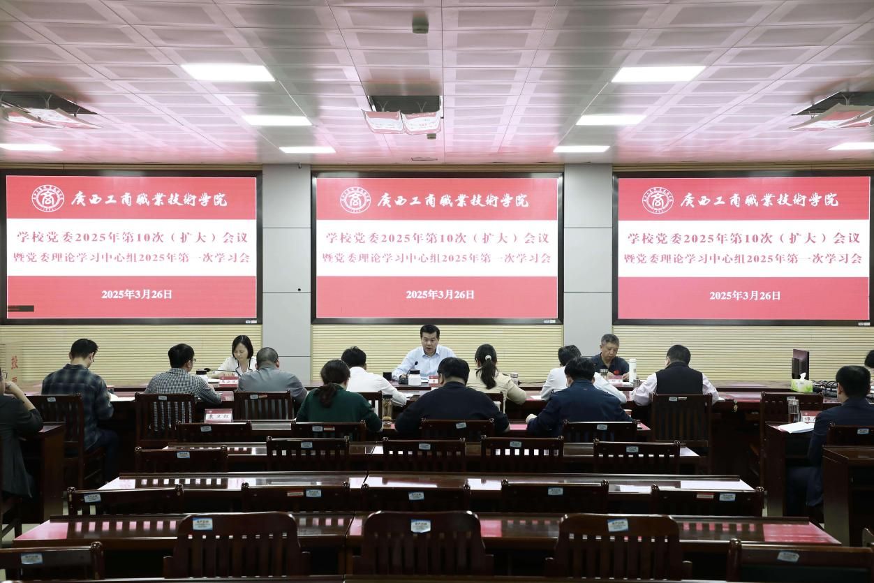 3月26日,學(xué)校在鵬飛校區(qū)召開(kāi)學(xué)校黨委理論學(xué)習(xí)中心組2025年第一次學(xué)習(xí)會(huì),重點(diǎn)圍繞深入學(xué)習(xí)領(lǐng)會(huì)習(xí)近平總書(shū)記關(guān)于加強(qiáng)黨的作風(fēng)建設(shè)的重要論述和中央八項(xiàng)規(guī)定及其實(shí)施細(xì)則精神、深入學(xué)習(xí)領(lǐng)會(huì)習(xí)近平總書(shū)記關(guān)于鑄牢中華民族共同體意識(shí)重要論述、深刻領(lǐng)悟“兩個(gè)確立”的決定性意義等內(nèi)容開(kāi)展學(xué)習(xí)研討。會(huì)議由學(xué)校黨委書(shū)記李維主持。