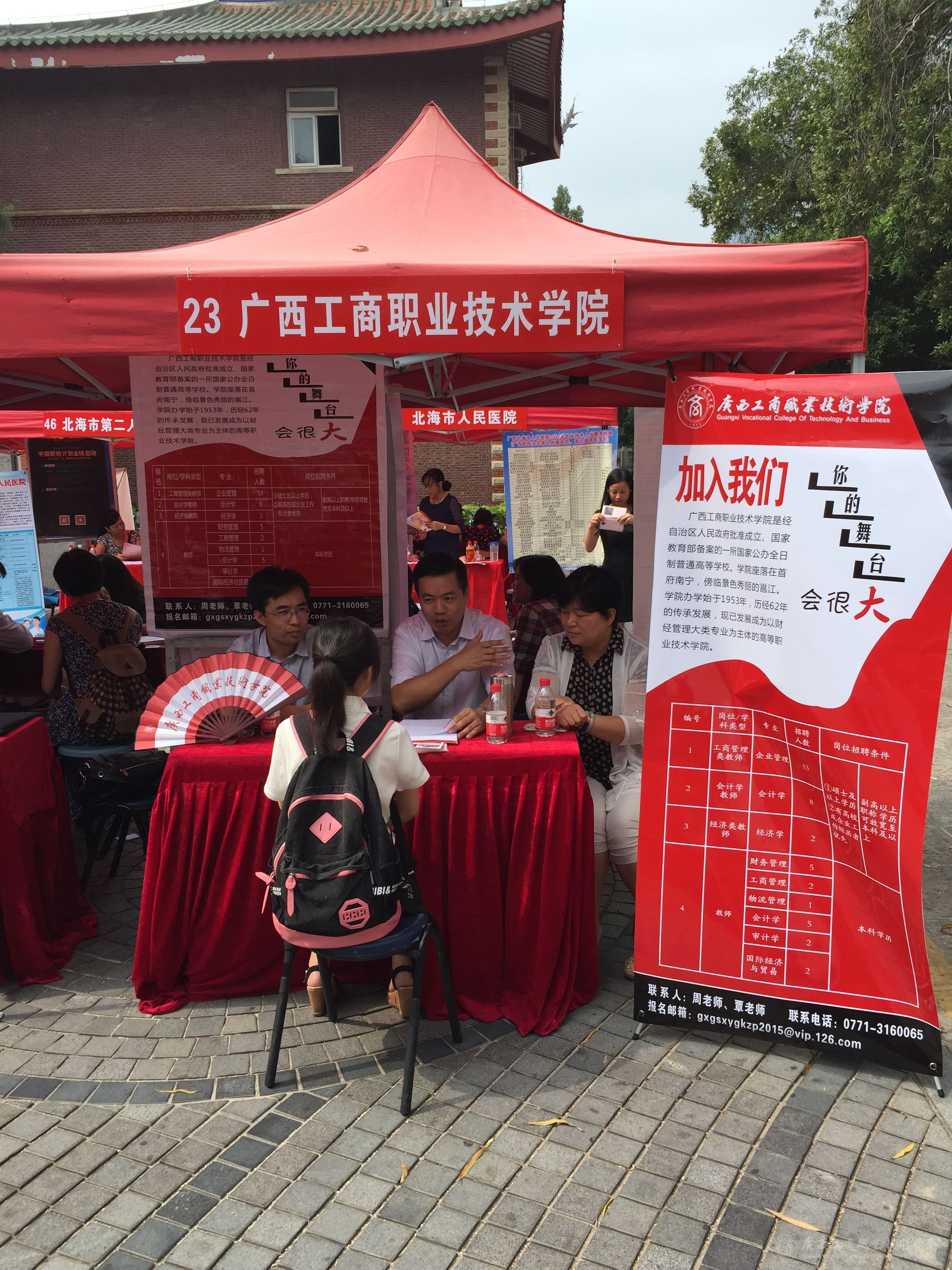 招聘會(huì)期間,自治區(qū)黨委組織部部務(wù)委員、副巡視員曾凱同志到我校展位指導(dǎo)工作,向李維副院長(zhǎng)了解了招聘情況,稱(chēng)贊我院的展架設(shè)計(jì)和文化扇富有工商特色。