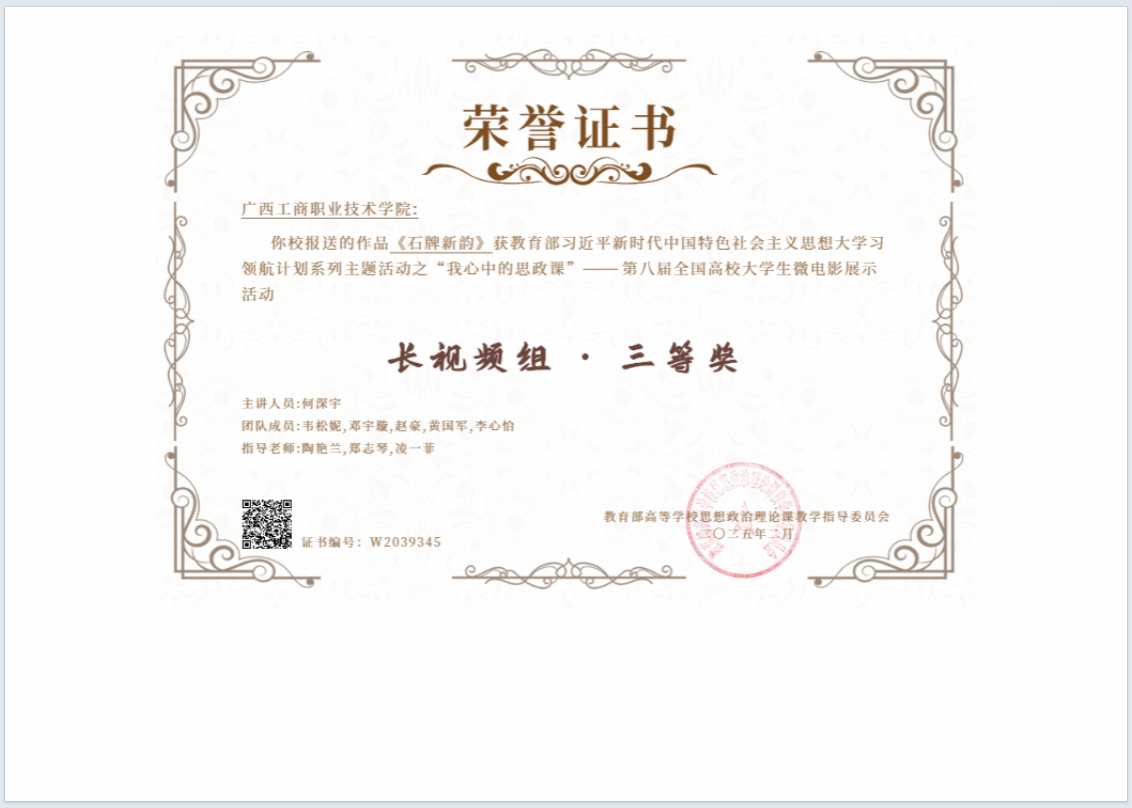 由教育部高等學(xué)校思想政治理論課教學(xué)指導(dǎo)委員會主辦的“七十五載薪火傳承,千秋偉業(yè)奮斗有我”——第八屆全國高校大學(xué)生講思政課公開課展示活動和“我心中的思政課”——第八屆全國高校大學(xué)生微電影展示活動圓滿結(jié)束,我校馬克思主義學(xué)院黃森曼老師團(tuán)隊指導(dǎo)的《如何理解社會主義市場經(jīng)濟的優(yōu)勢》和陶艷蘭老師團(tuán)隊指導(dǎo)的《石牌新韻》2個作品入圍國賽,經(jīng)過角逐,均榮獲三等獎。這是我校第三年獲此榮譽。