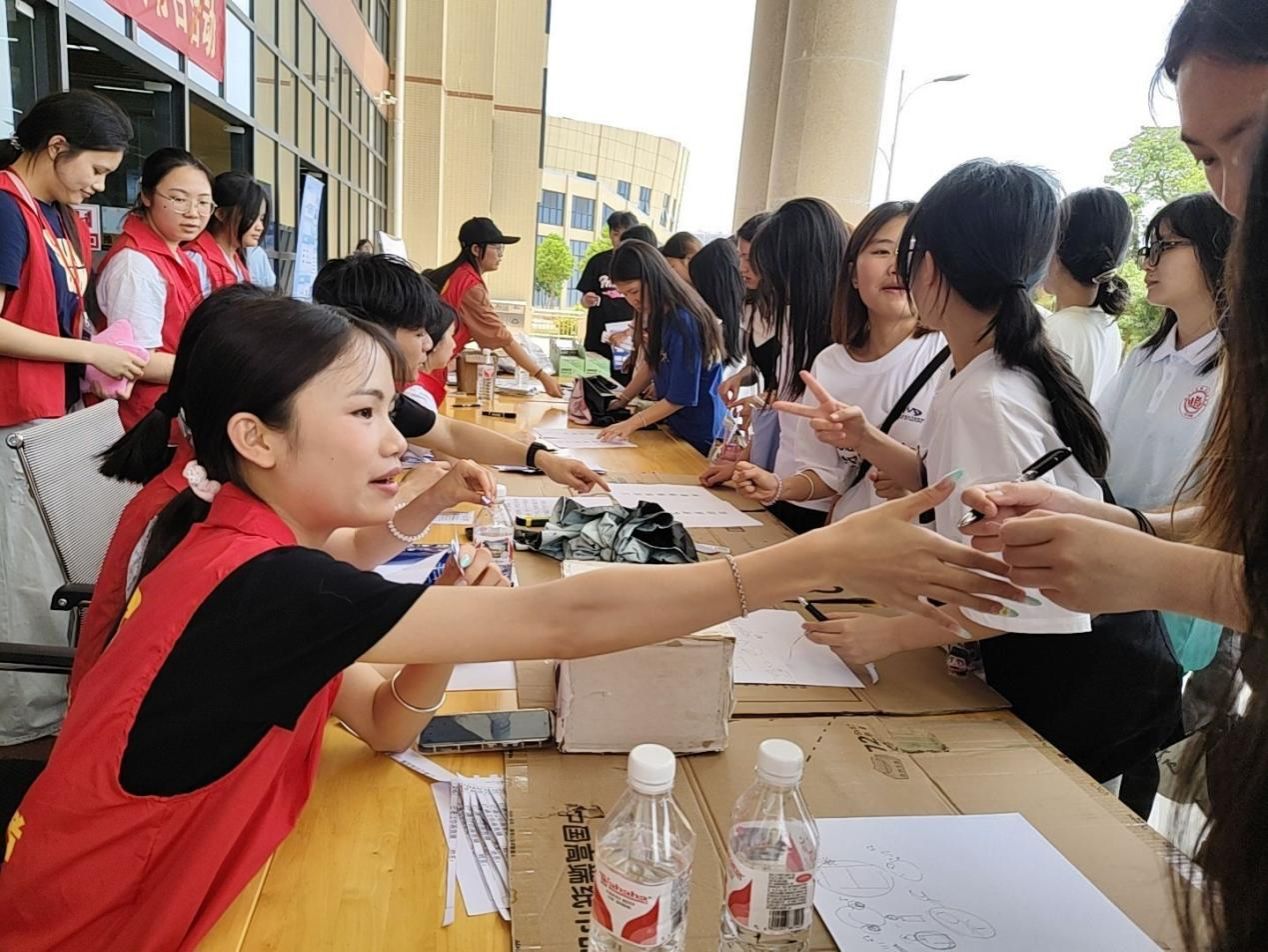 在啟動儀式后的互動環(huán)節(jié),在鵬飛校區(qū)、武鳴校區(qū)、中堯校區(qū)開展了讀書日系列活動?!霸娫~大挑戰(zhàn)” 環(huán)節(jié)中,參與者需要根據(jù)提示猜出相應(yīng)的詩詞,不僅考驗了大家的詩詞儲備量,更激發(fā)了對中華經(jīng)典詩詞的熱愛;“套圈” 游戲別出心裁,獎品為多肉植物、綠植盆栽等,讓師生們在游戲的同時收獲一抹綠意;“你畫我猜”現(xiàn)場妙趣橫生,參與者手腳并用、形象比劃,搭檔絞盡腦汁猜測詞語,夸張的動作和搞笑的互動引得圍觀人群捧腹大笑;“簽名打卡拍照”區(qū),師生們在精心布置的主題背景墻前揮毫簽名,與書香留影,記錄下這充滿文化氣息的美好時刻。據(jù)統(tǒng)計,本次活動啟動儀式參與人數(shù)規(guī)模為2200多人次。