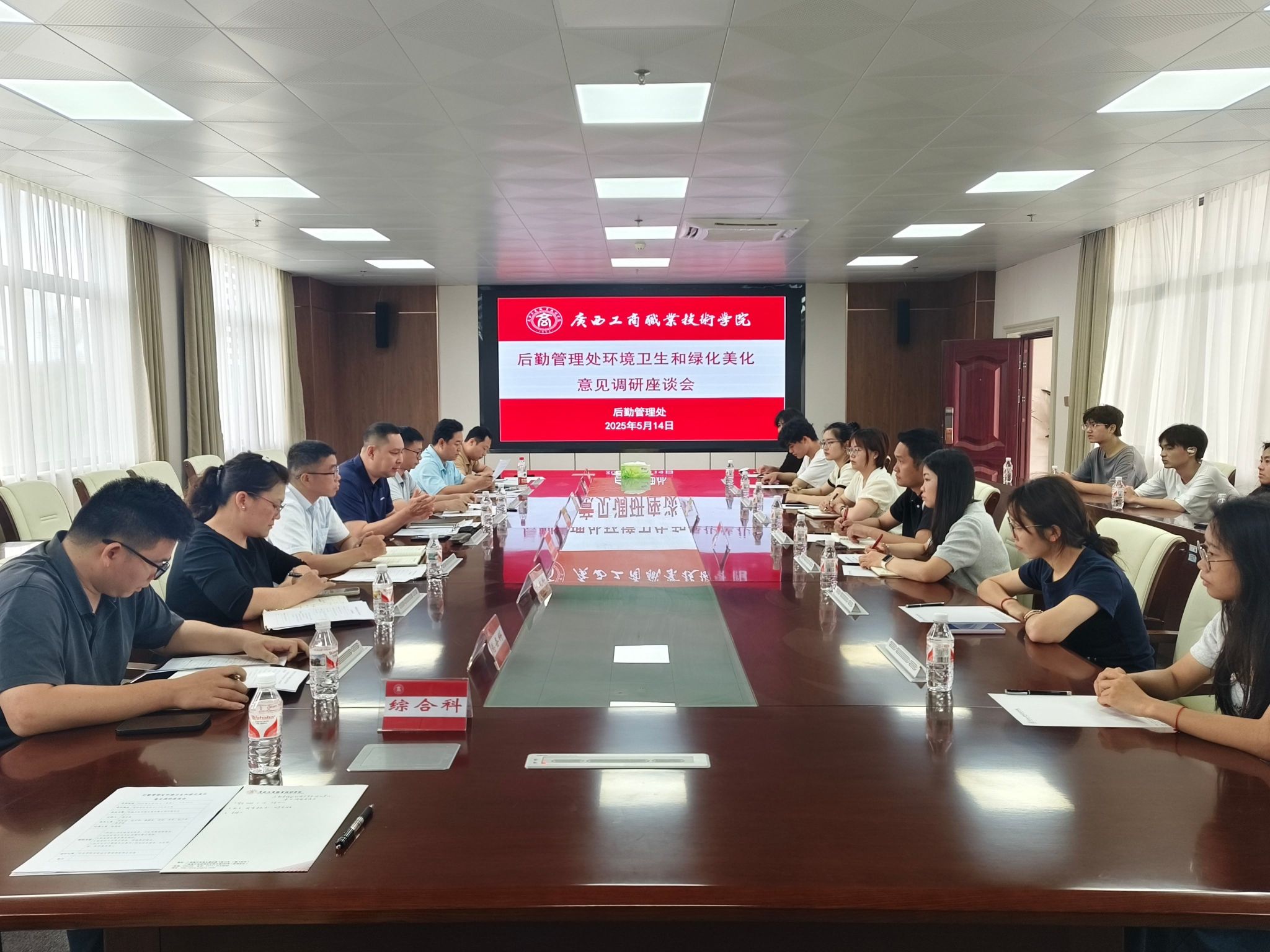 5月14日,學(xué)校副校長(zhǎng)陳寧春帶領(lǐng)后勤管理處處長(zhǎng)林昆榮、后勤管理處副處長(zhǎng)陸升將、保衛(wèi)處分管工作負(fù)責(zé)人譚爵璽及相關(guān)科室人員在武鳴校區(qū)東區(qū)開展了環(huán)境衛(wèi)生和綠化美化意見調(diào)研工作,財(cái)金學(xué)院和糧油與管理學(xué)院的師生代表參加了調(diào)研座談會(huì)。