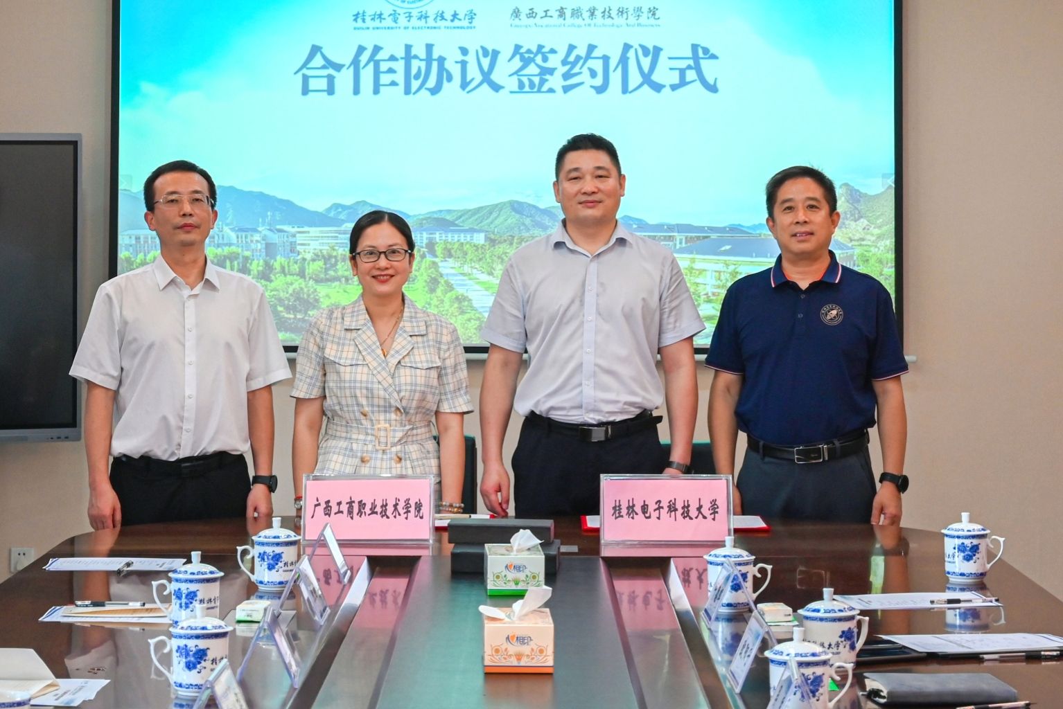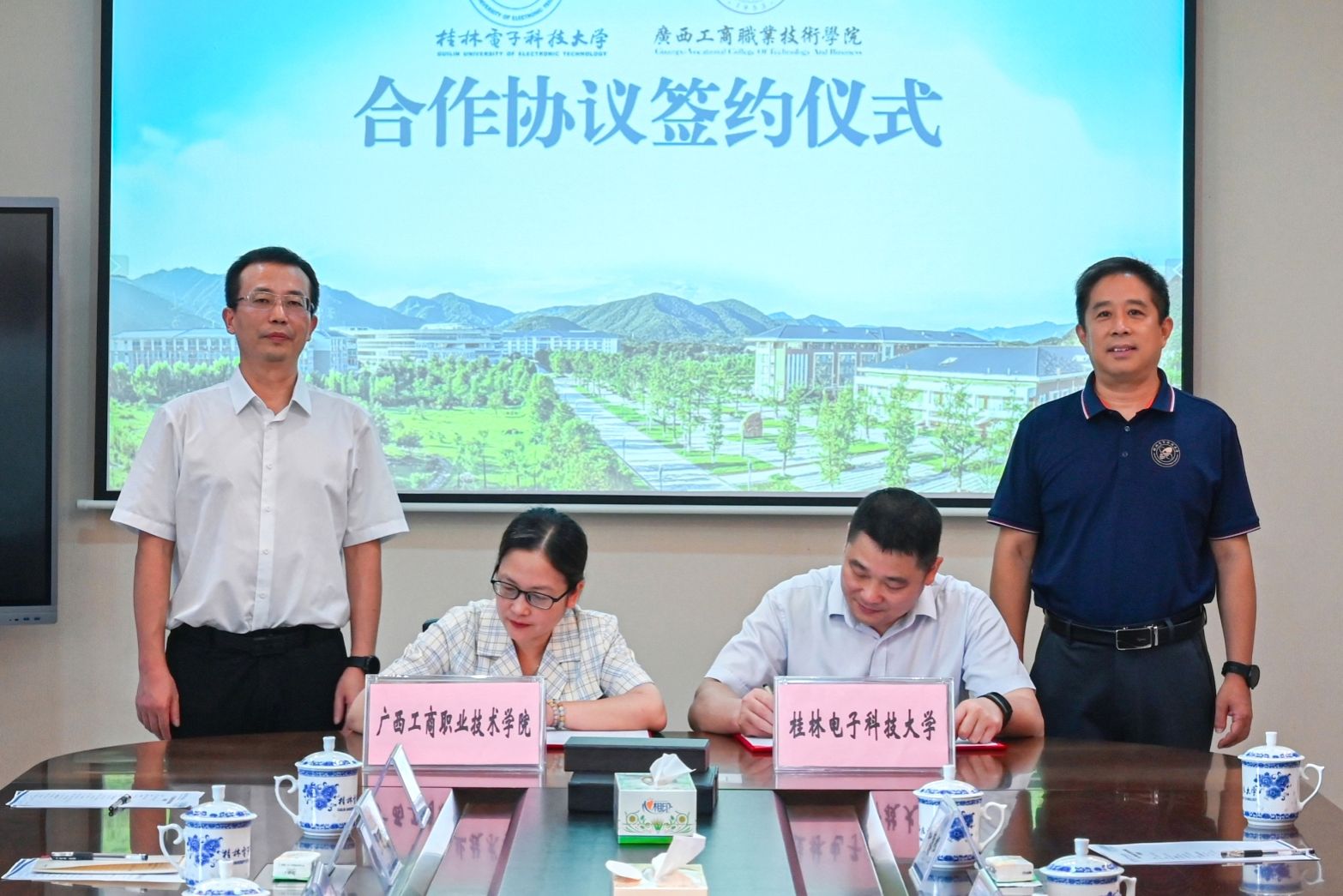 為深入貫徹習(xí)近平總書記關(guān)于人工智能發(fā)展的重要指示精神,加快構(gòu)建高職“人工智能+”專業(yè)體系,充分發(fā)揮本科專業(yè)優(yōu)勢,推動高職與本科人工智能專業(yè)協(xié)同發(fā)展,促進(jìn)我校人才培養(yǎng)、專業(yè)建設(shè)、師資隊(duì)伍高質(zhì)量發(fā)展,6月26日,學(xué)校黨委副書記、校長劉進(jìn)帶隊(duì)赴桂林電子科技大學(xué)簽署合作協(xié)議。桂林電子科技大學(xué)黨委副書記、校長張文濤和校黨委常委、副校長李海鷗,我校黨委副書記、校長劉進(jìn),黨委委員、副校長鄭華,以及兩校相關(guān)職能部門、二級學(xué)院等部門負(fù)責(zé)人出席簽約儀式。