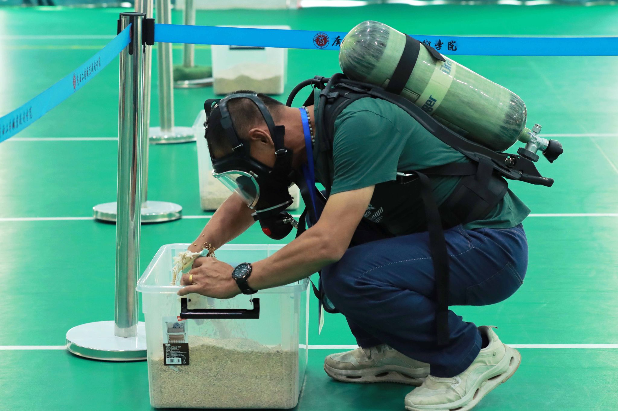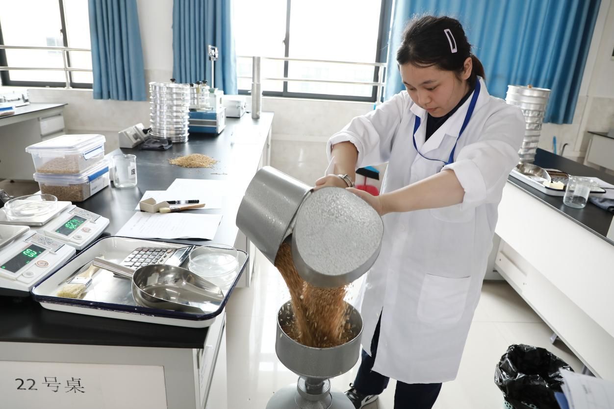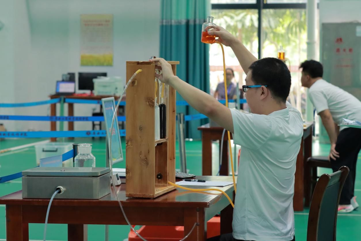 本次競賽緊密對接全國競賽標準和要求,設(糧油)倉儲管理員和農產品食品檢驗員兩個職業(yè)(職業(yè)方向),分設職工組和學生組。競賽進行理論知識考試和技能操作考評項目比拼,兩個項目分數(shù)加權計算確定總成績。其中(糧油)倉儲管理員實操競賽內容為計算機糧情檢測與分析、檢查氣調儲糧殺蟲抑菌效果、風力測定,農產品食品檢驗員實操競賽內容為標準溶液配制與標定、糧食驗質定等。