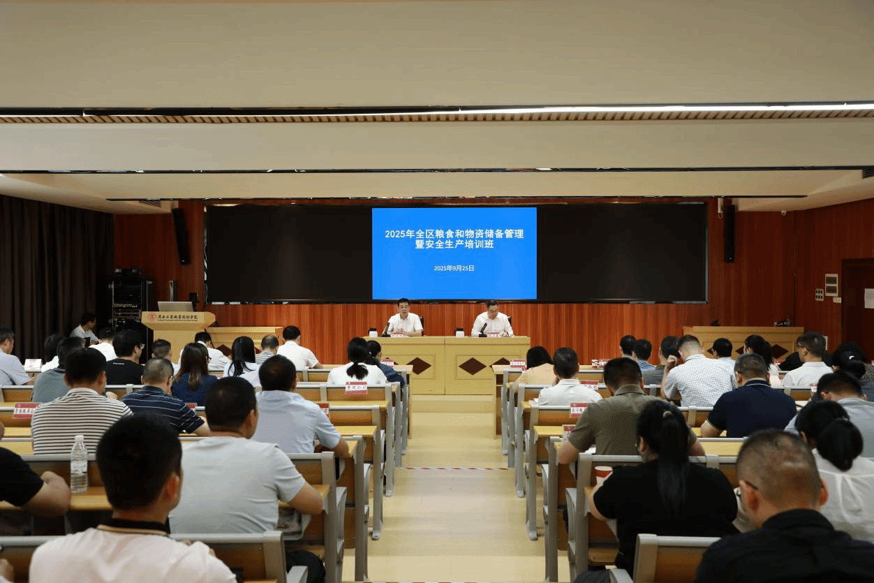9月24日至26日,2025年全區(qū)糧食和物資儲(chǔ)備管理暨安全生產(chǎn)培訓(xùn)班在我校舉辦,共有百余位來(lái)自全區(qū)糧儲(chǔ)系統(tǒng)的職工骨干參加此次培訓(xùn)班。培訓(xùn)班聚焦糧食倉(cāng)儲(chǔ)規(guī)范化管理、豬肉儲(chǔ)備安全保障及安全生產(chǎn)三大核心任務(wù),通過(guò)“理論授課+現(xiàn)場(chǎng)觀摩+經(jīng)驗(yàn)交流”的多元化形式,為全區(qū)糧儲(chǔ)系統(tǒng)骨干力量充電賦能,夯實(shí)糧食和物資儲(chǔ)備安全根基。