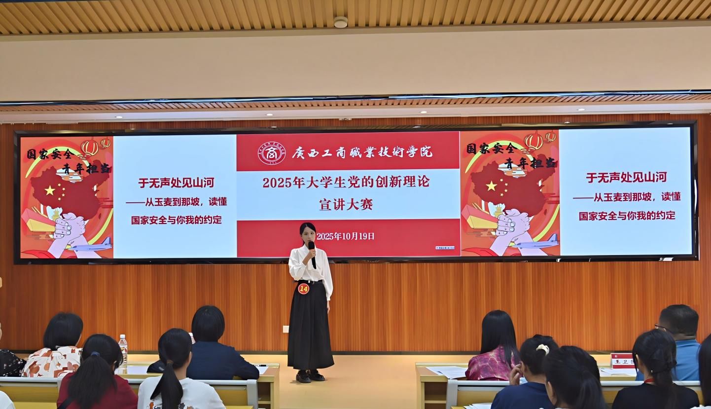 選手們的精彩表現(xiàn)贏得了現(xiàn)場(chǎng)師生的陣陣掌聲。賽后,廣西農(nóng)業(yè)職業(yè)技術(shù)大學(xué)馬克思主義學(xué)院副院長(zhǎng)蔣飛燕教授作現(xiàn)場(chǎng)點(diǎn)評(píng),她充分肯定了大賽的組織水平和選手的整體表現(xiàn),并指出,今后的理論宣講應(yīng)進(jìn)一步結(jié)合學(xué)校商科背景與職業(yè)教育特色,注重選題精準(zhǔn)、表達(dá)生動(dòng),善用“小切口”展現(xiàn)“大情懷”,切實(shí)推動(dòng)黨的創(chuàng)新理論在青年群體中入腦入心、落地生根。