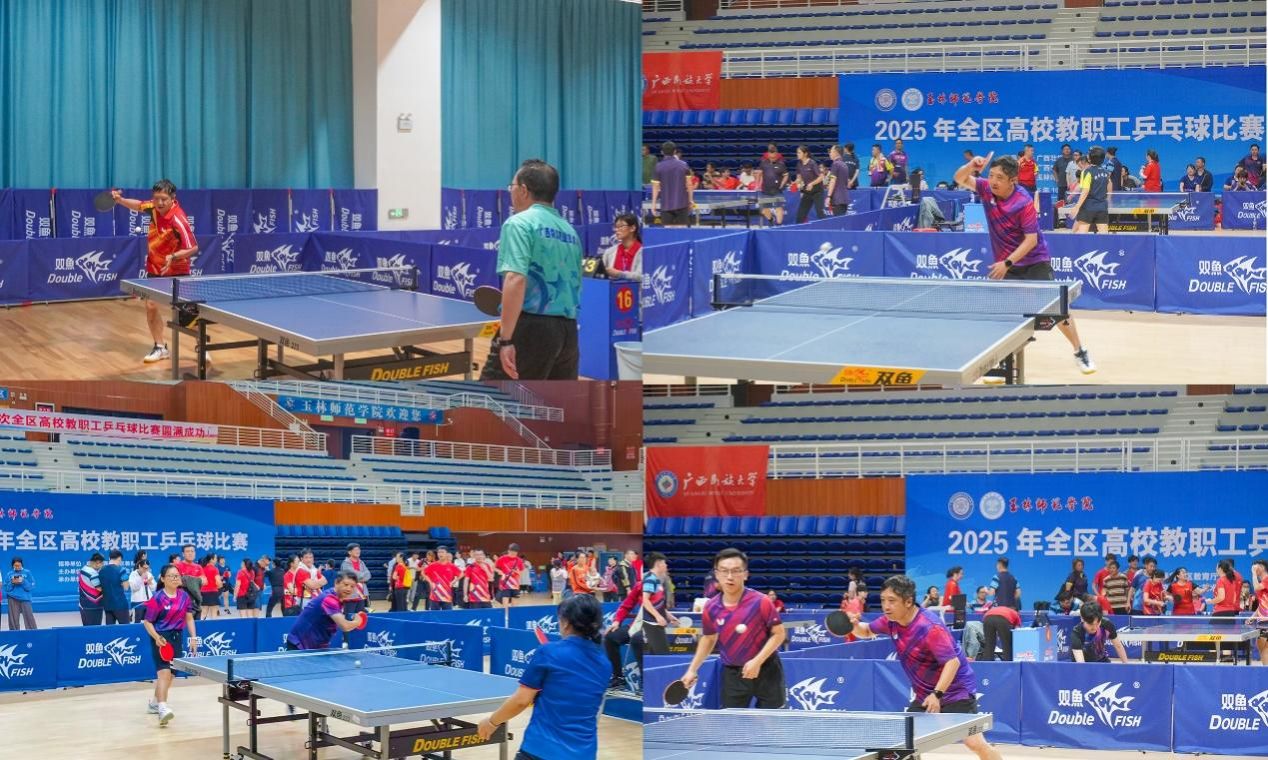 10月23日至26日,由廣西壯族自治區(qū)教育廳指導、廣西學校體育衛(wèi)生藝術學會主辦、玉林師范學院承辦的全區(qū)高校教職工乒乓球比賽在玉林師范學院成功舉辦。本次比賽共有來自全區(qū)高校的33支代表隊、479名運動員和教練員參加。我校由黨委副書記、工會主席安仲文帶隊參賽并作為隊員出戰(zhàn)。