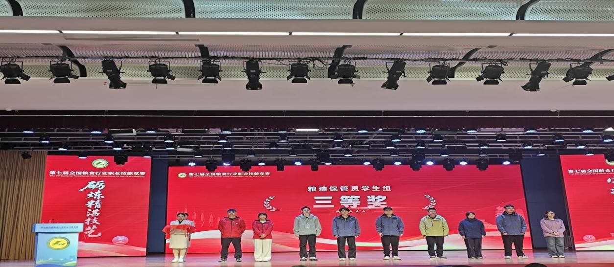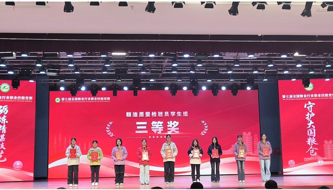 11月6日,第七屆全國糧食行業(yè)職業(yè)技能競賽圓滿落幕,我校參賽學(xué)生石又文、王瓊銳、馬海雯憑借扎實的專業(yè)功底、精湛的實操技能與頑強的抗壓能力,歷經(jīng)兩天的實操比拼、理論考核等多輪角逐,最終從來自全國30個省(區(qū)、市)34支代表隊的354名選手中脫穎而出,斬獲(糧油)倉儲管理員職業(yè)高職學(xué)生組三等獎(指導(dǎo)教師:韓蓉、張罡睿)和農(nóng)產(chǎn)品食品檢驗員職業(yè)高職學(xué)生組三等獎(指導(dǎo)教師:李小媚、黃蘇迪),學(xué)校榮獲優(yōu)秀院校獎。