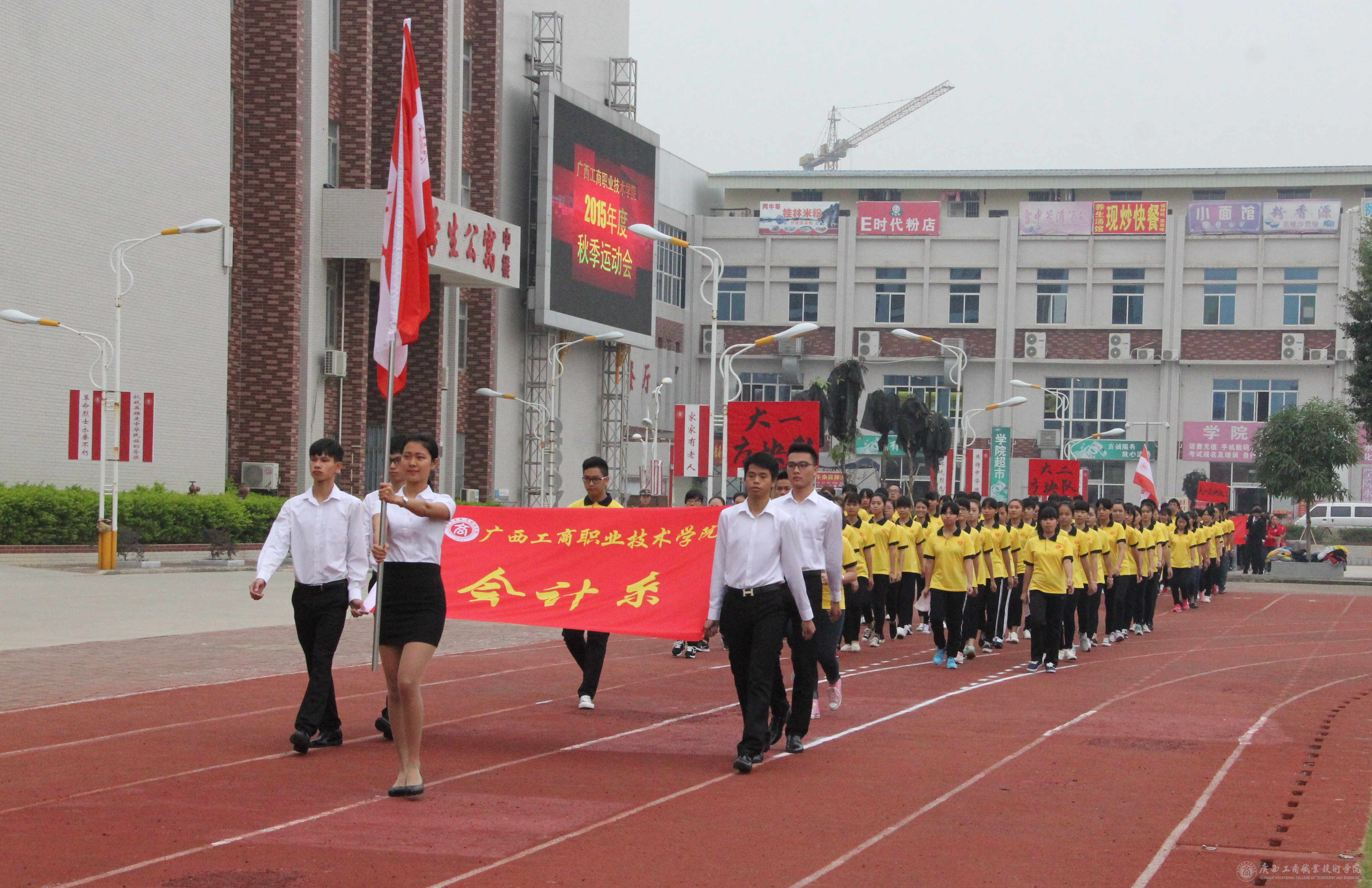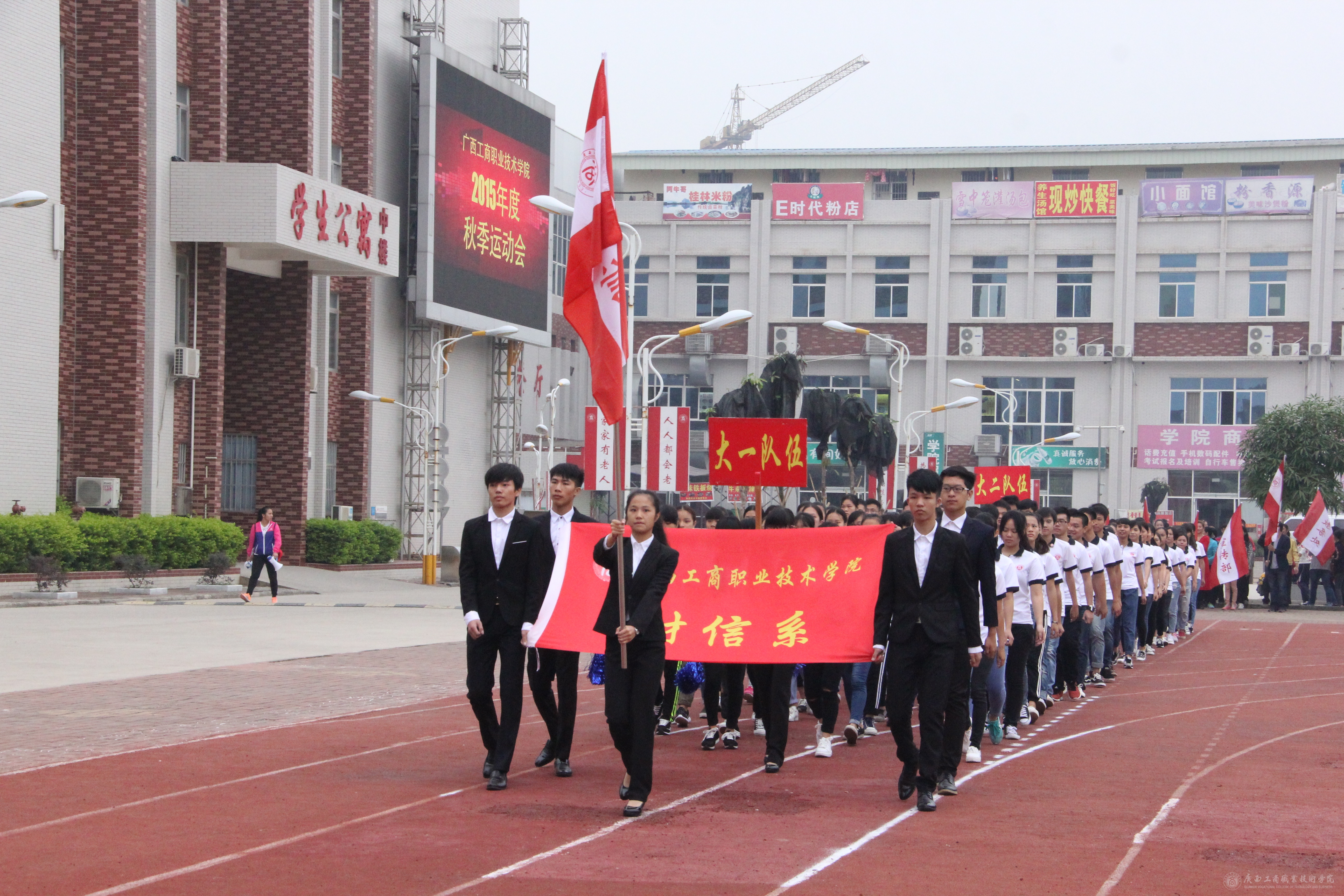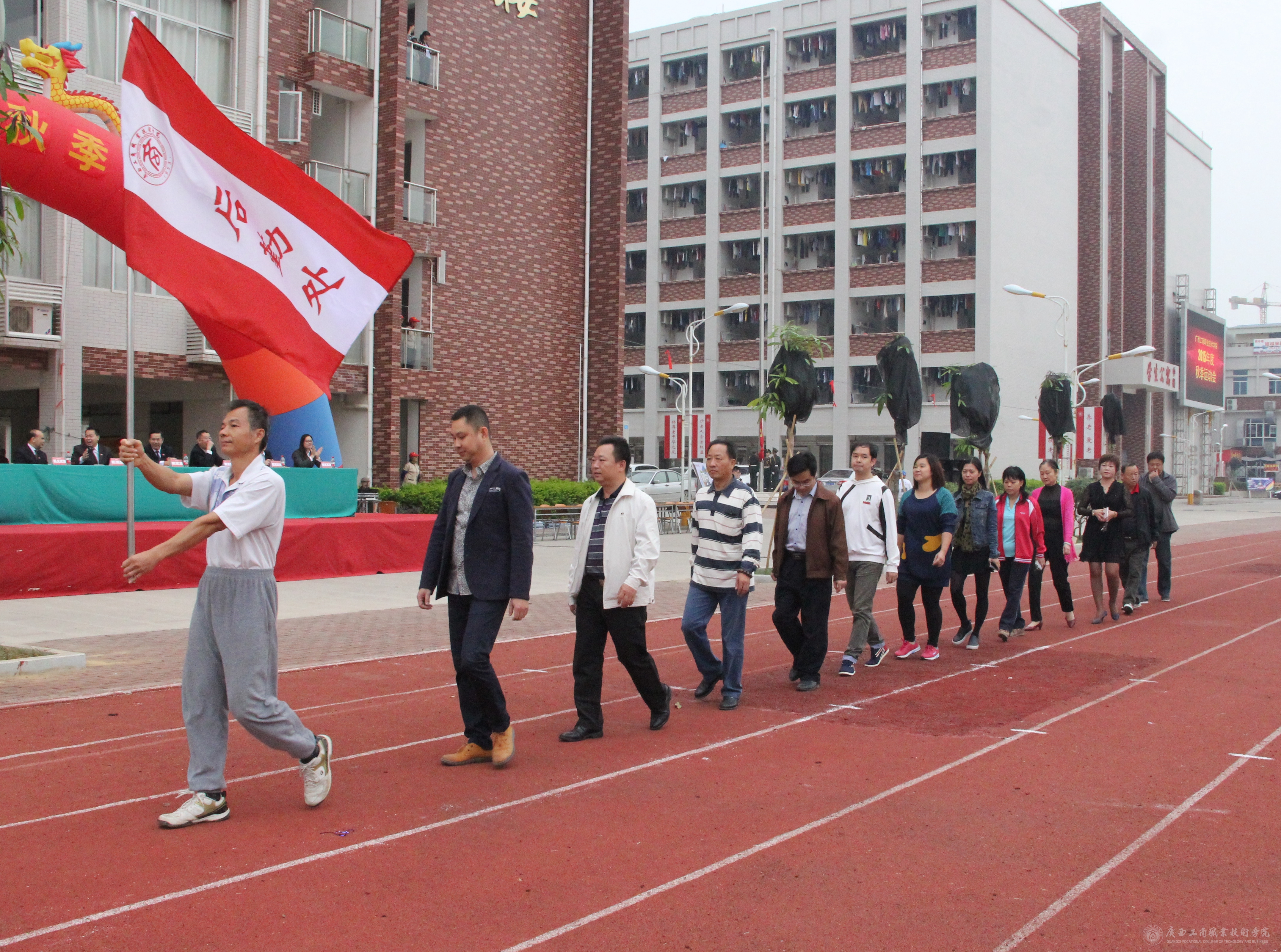 最后,學(xué)院黨委書記覃武云同志莊嚴宣布:廣西工商職業(yè)技術(shù)學(xué)院2015年度秋季運動會開幕!全場響起經(jīng)久不息的掌聲。