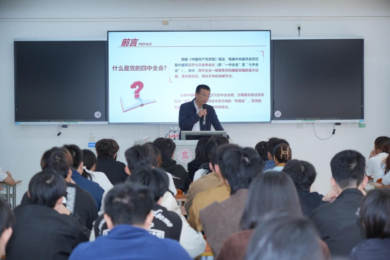 宣講伊始,劉進校長為同學(xué)們梳理了從新中國成立以來的歷次四中全會及不可替代的特殊地位,并強調(diào)不久前勝利閉幕的黨的二十屆四中全會,是在“十四五”規(guī)劃即將收官、“十五五”規(guī)劃即將啟幕的關(guān)鍵時刻召開的一次重要會議。