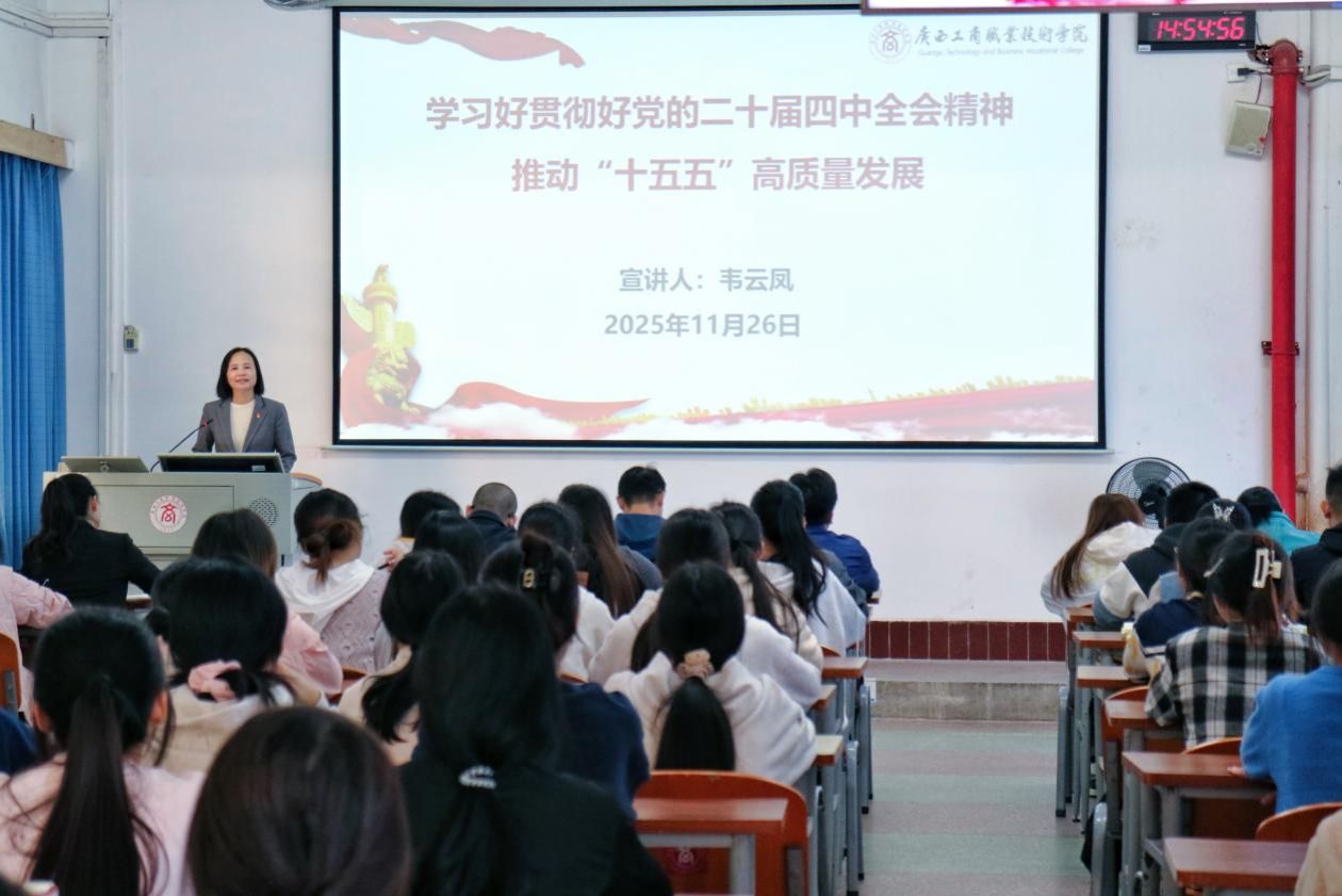 11月26日下午,學(xué)校黨委副書記、紀(jì)委書記韋云鳳在中堯校區(qū)開展學(xué)習(xí)貫徹黨的二十屆四中全會(huì)精神專題宣講,黨委宣傳部(新聞中心)、紀(jì)委辦公室、監(jiān)察室教師以及會(huì)計(jì)學(xué)院師生代表參加宣講會(huì)。