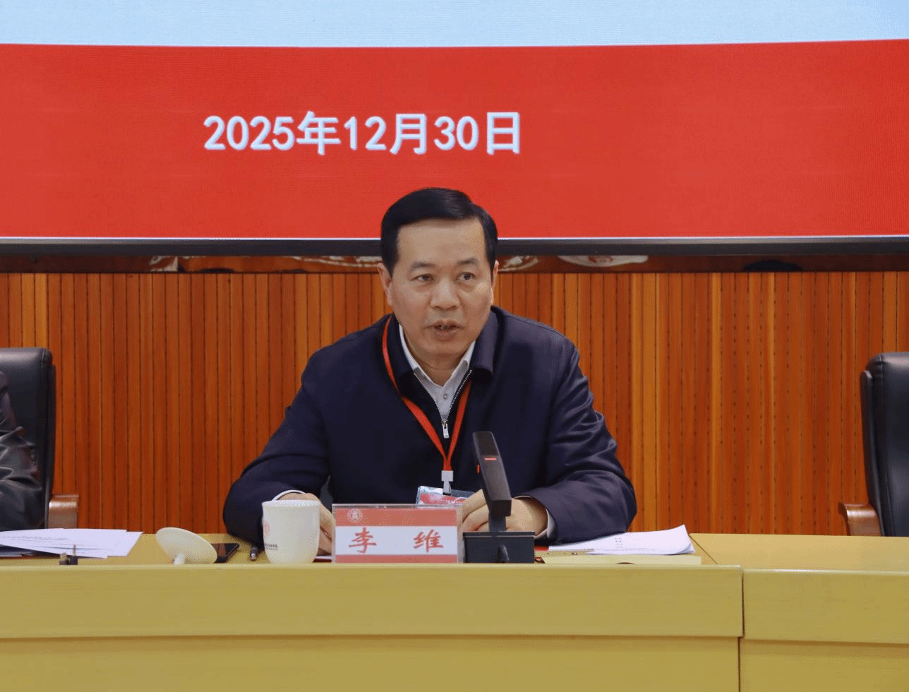 李維在閉幕會上作講話。他指出,本次大會期間各代表提出了寶貴的意見和建議,體現(xiàn)了全體教職工對共同發(fā)展學(xué)校事業(yè)的主人翁精神,學(xué)校將始終堅(jiān)持以師生為中心的發(fā)展思想,持續(xù)傾聽群眾意見、響應(yīng)群眾呼聲。為了推動歲末年初學(xué)校各項(xiàng)工作的落實(shí),他提出三點(diǎn)要求:一是要抓好收官提質(zhì)與整改落實(shí),嚴(yán)把教學(xué)質(zhì)量、科研成果、管理服務(wù)三道關(guān)口,統(tǒng)籌學(xué)校期末工作,確保本學(xué)期工作圓滿收官;以釘釘子精神推進(jìn)巡視整改、審計(jì)整改各項(xiàng)任務(wù)落地見效。二是要錨定長遠(yuǎn)發(fā)展與規(guī)劃編制,立足學(xué)校發(fā)展全局,抓緊謀劃明年重點(diǎn)工作、編制“十五五”規(guī)劃。三是要深化作風(fēng)建設(shè)與安全保障,持續(xù)深化作風(fēng)建設(shè)和師德師風(fēng)建設(shè),以優(yōu)良作風(fēng)引領(lǐng)校風(fēng)學(xué)風(fēng)。全校上下要繃緊安全穩(wěn)定弦,切實(shí)扛起安全主體責(zé)任。