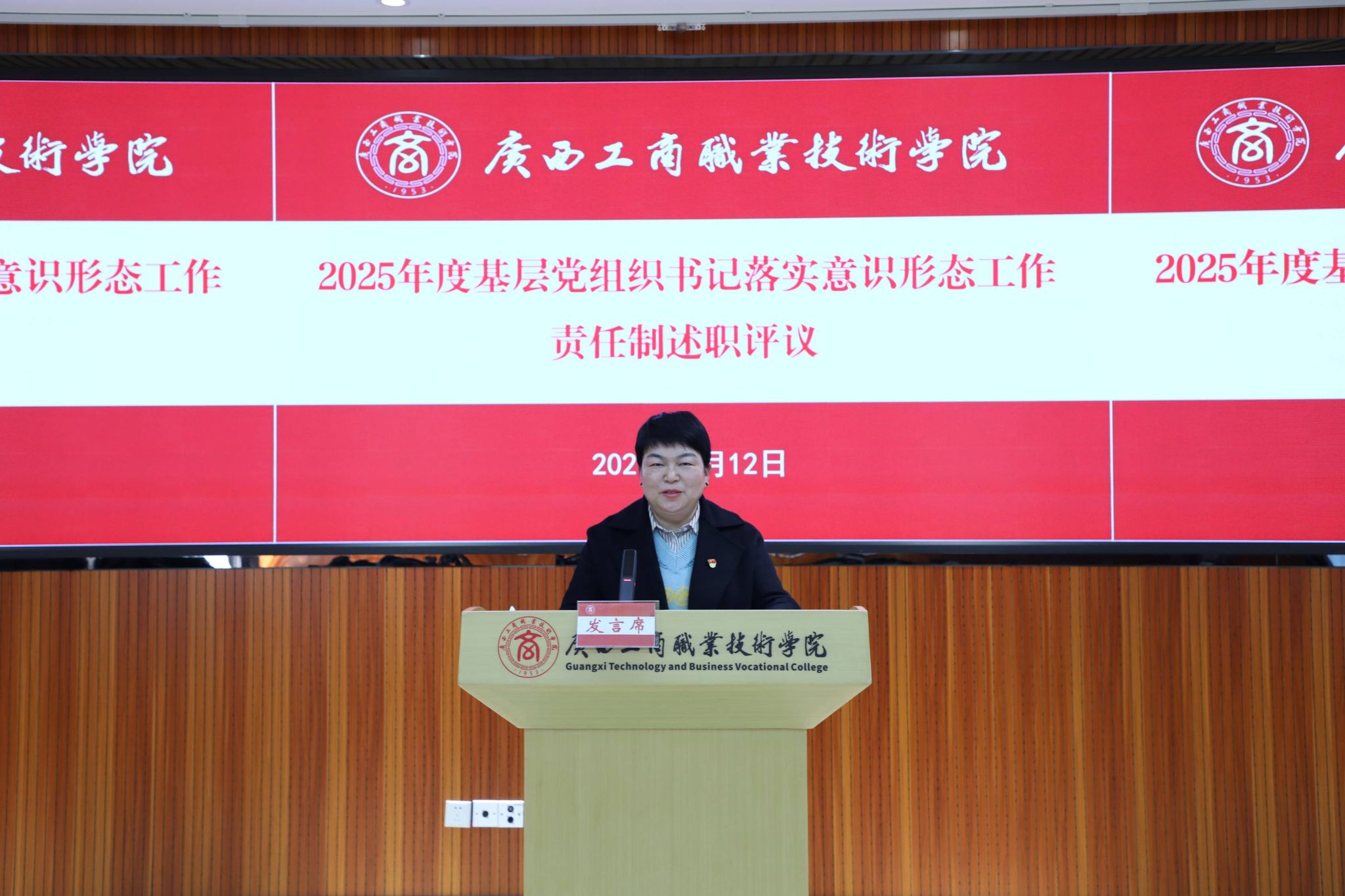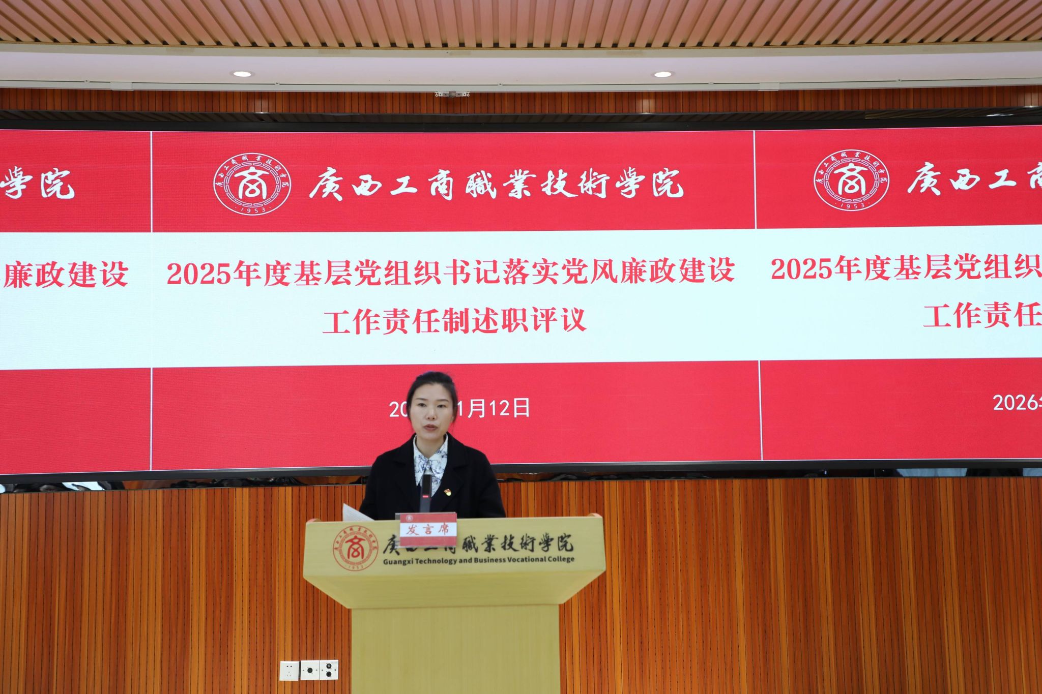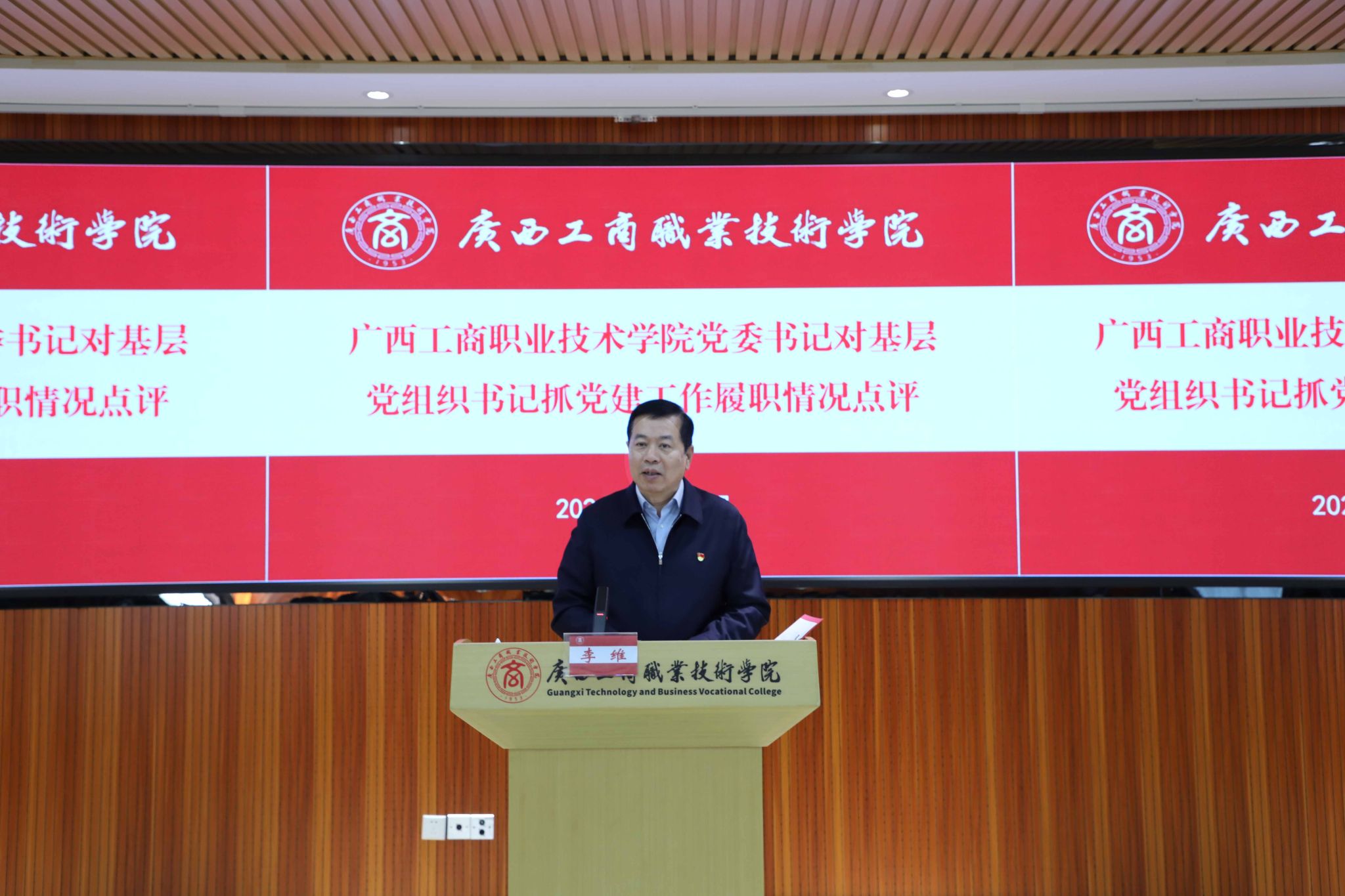 2026年1月12日上午,我校黨委以黨委擴(kuò)大會(huì)議的方式在鵬飛校區(qū)開(kāi)展2025年度基層黨組織書(shū)記抓黨建工作述職評(píng)議考核暨部門和中層管理人員年度述職評(píng)議。學(xué)校黨委委員,各黨總支、各直屬黨支部書(shū)記、委員,中層管理人員、教代會(huì)代表參加會(huì)議,學(xué)校黨委書(shū)記李維主持會(huì)議。