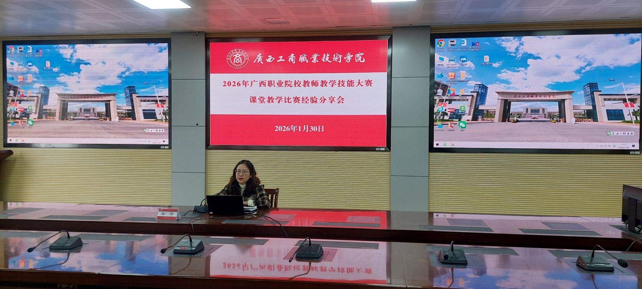 為扎實推進(jìn)2026年廣西職業(yè)院校教師教學(xué)技能大賽課堂教學(xué)比賽備賽工作,全面提升參賽作品質(zhì)量與教師教學(xué)核心能力,2026年1月30日上午,我校在鵬飛校區(qū)召開經(jīng)驗分享會。學(xué)校副校長鄭華,教務(wù)處、各二級學(xué)院主要領(lǐng)導(dǎo),參賽團(tuán)隊全體成員,以及各二級學(xué)院骨干教師代表參加了會議。