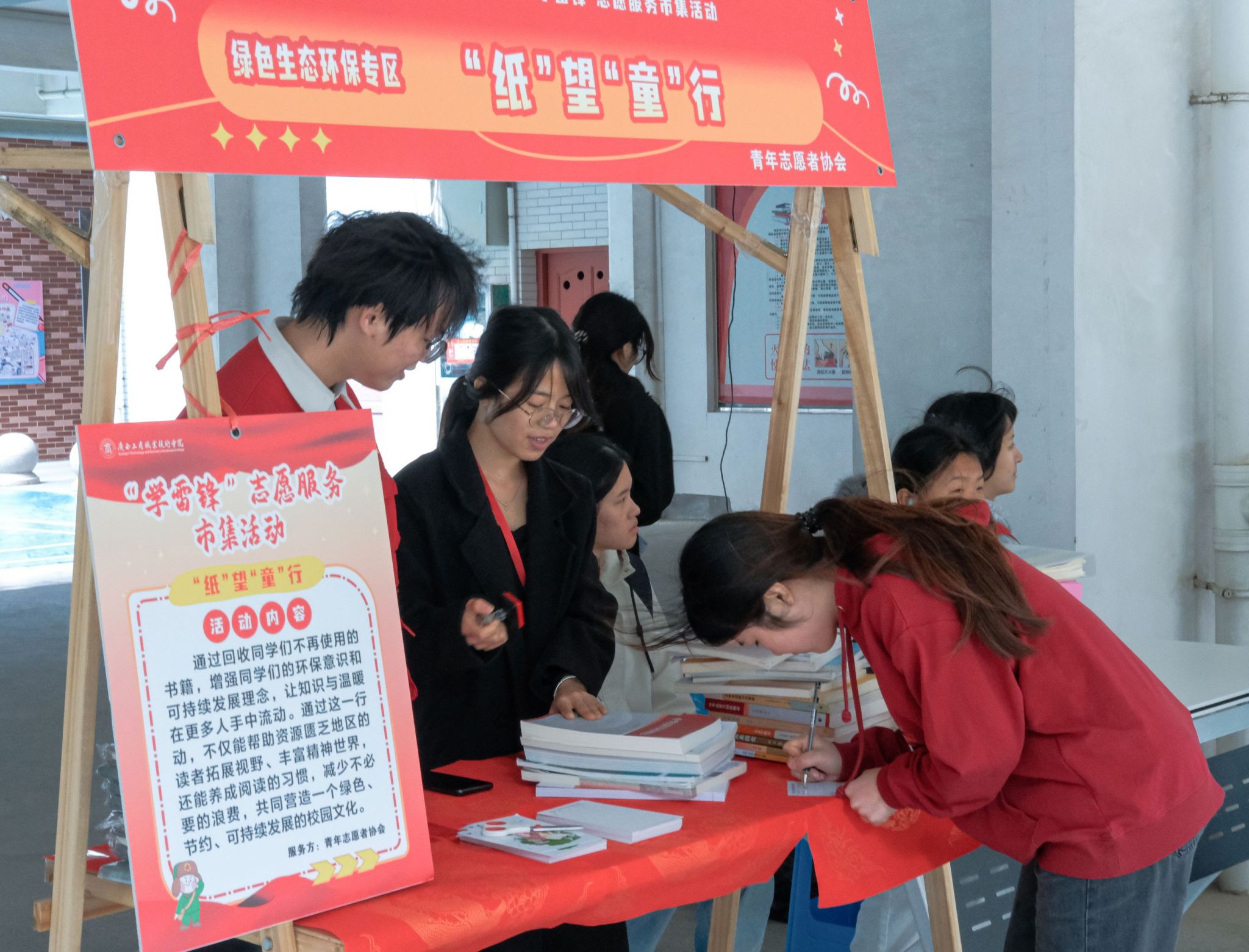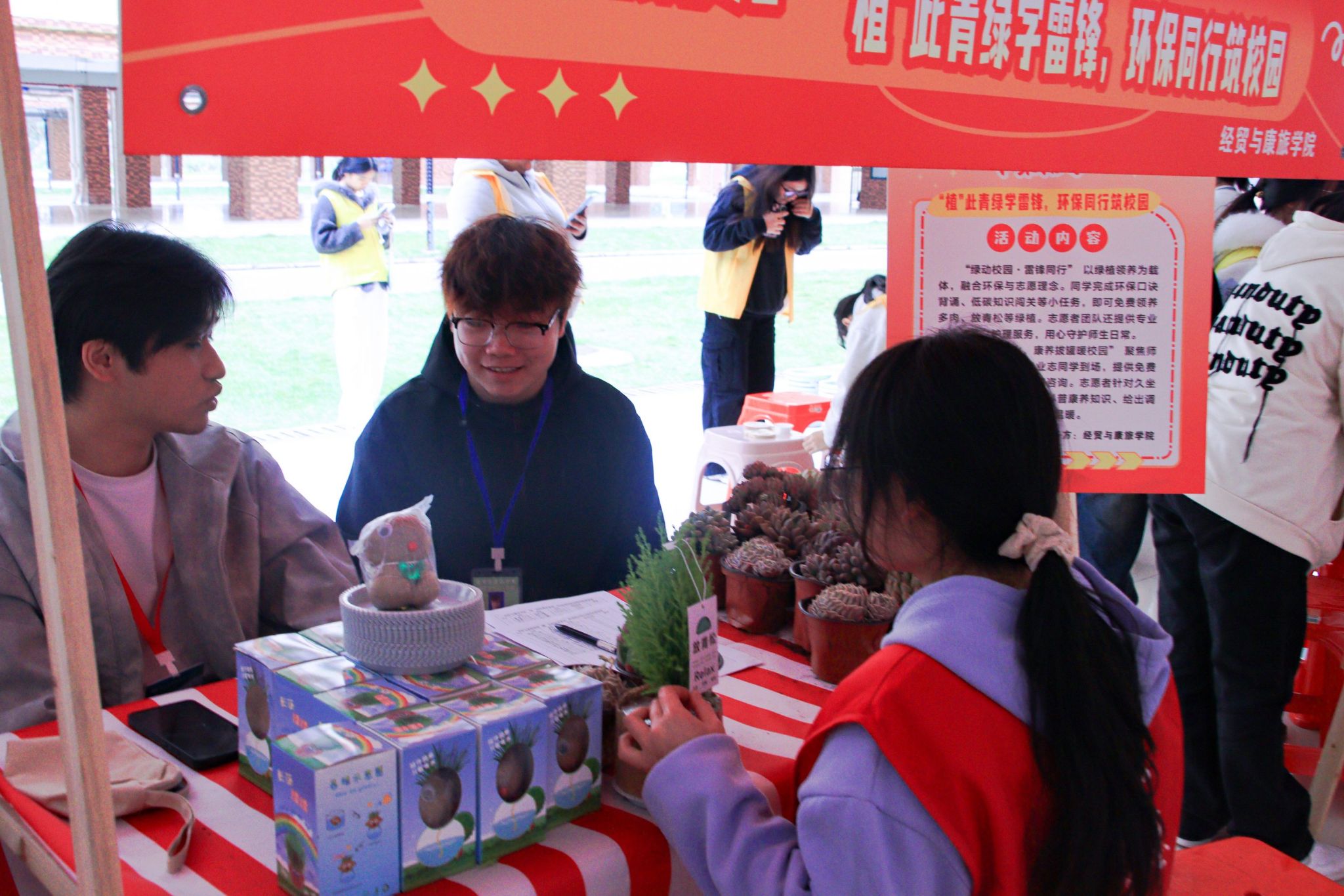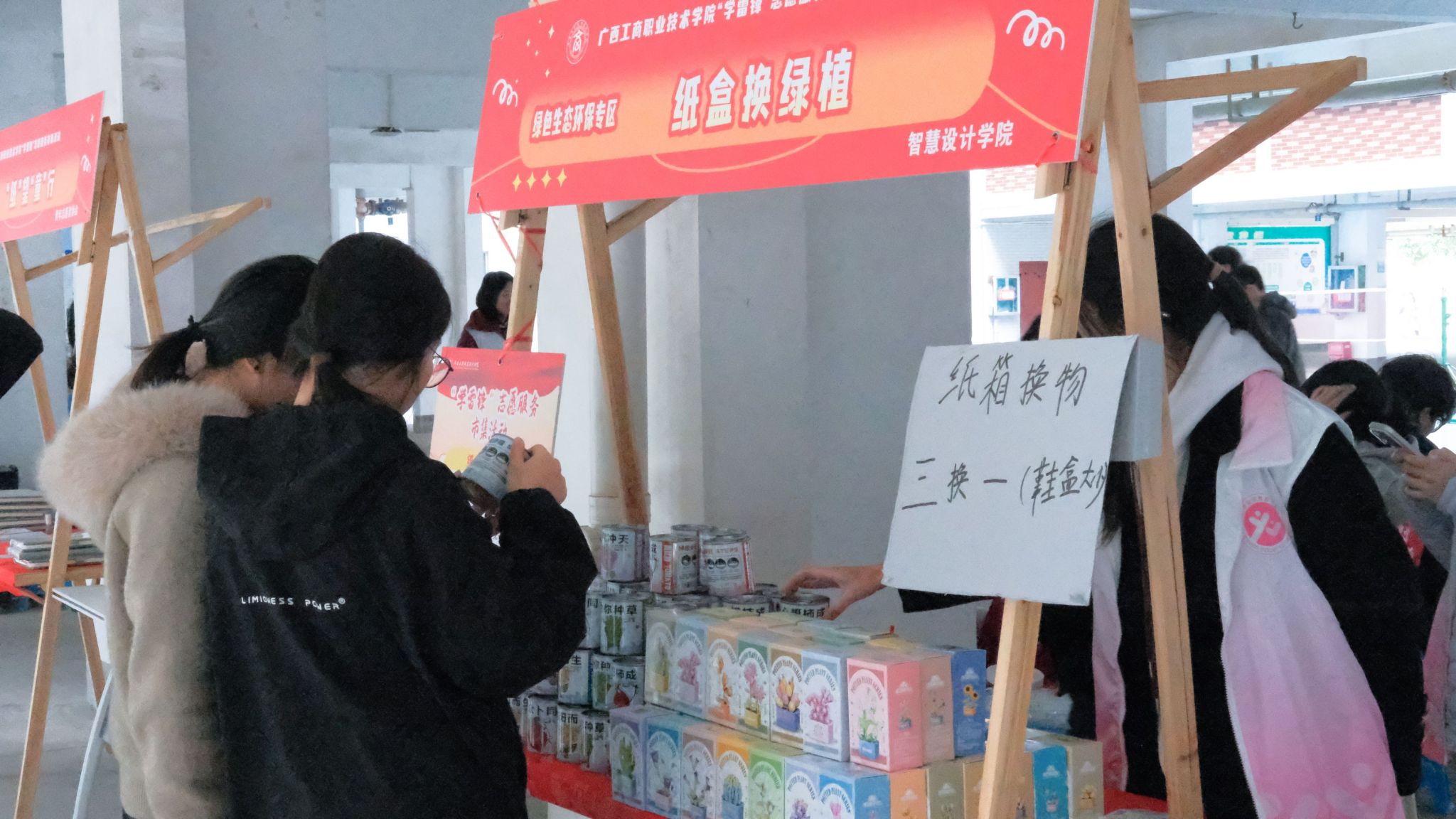 踐行習(xí)近平生態(tài)文明思想,“綠色生態(tài)環(huán)保專區(qū)”用實(shí)際行動為春天增添綠意。青年志愿者協(xié)會在三校區(qū)同步開展“‘紙’望‘童’行”舊書回收活動,通過回收同學(xué)們不再使用的書籍,增強(qiáng)環(huán)保意識,讓知識與溫暖在更多人手中流動。經(jīng)貿(mào)與康旅學(xué)院在開展“‘植’此青綠學(xué)雷鋒,環(huán)保同行筑校園”活動,設(shè)置垃圾分類挑戰(zhàn)賽、廢舊物品回收兌換、環(huán)保手作課堂、環(huán)保倡議簽名等環(huán)節(jié),并開展眼鏡清洗服務(wù)和康養(yǎng)拔罐體驗(yàn)。智慧設(shè)計(jì)學(xué)院開展“紙盒換綠植”活動,同學(xué)們可用干凈無破損的紙盒換取綠植,共同推動綠色校園的可持續(xù)發(fā)展。