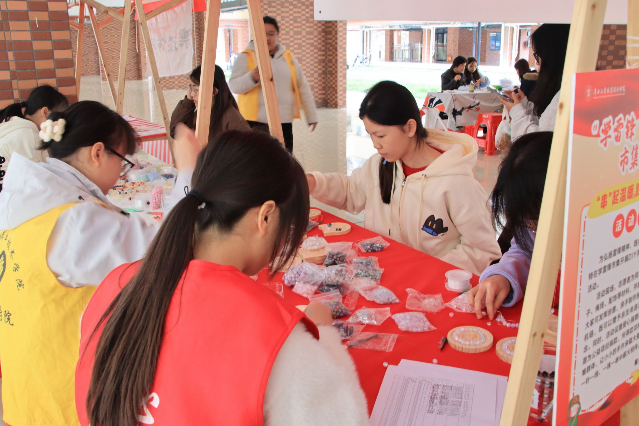 在“精神文化弘揚(yáng)專區(qū)”,思想的火花在互動中迸發(fā)。會計(jì)學(xué)院組織的“雷鋒精神薪火傳,實(shí)干為學(xué)正當(dāng)時(shí)”雷鋒志愿答題活動,以趣味快問快答形式普及雷鋒精神相關(guān)知識,加深師生對雷鋒事跡與精神內(nèi)涵的理解,厚植奉獻(xiàn)擔(dān)當(dāng)意識。財(cái)金學(xué)院開展的“‘串’起溫暖,踐行雷鋒精神”DIY公益制作活動,為同學(xué)們免費(fèi)提供各類珠子、繩線、配飾等材料,大家可發(fā)揮創(chuàng)意親手制作手串或手機(jī)鏈,活動還設(shè)置愛心捐贈環(huán)節(jié),參與者可自愿為公益項(xiàng)目捐款,讓小小的手作承載大愛。青年志愿者協(xié)會則開展“微光匯聚,志愿成炬”志愿風(fēng)采線下展示活動,通過展示志愿服務(wù)活動,匯聚青春力量,彰顯責(zé)任擔(dān)當(dāng)。