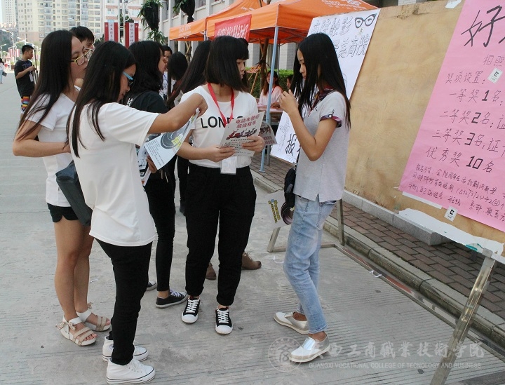 2015年11月18日中午12時,以“ 商院觸影之最美商院 ”為主題的攝影大賽,由我院C度攝影協(xié)會承辦,在我院食堂前對我院同學征集報名,正當放學時間有許多同學前往報名。