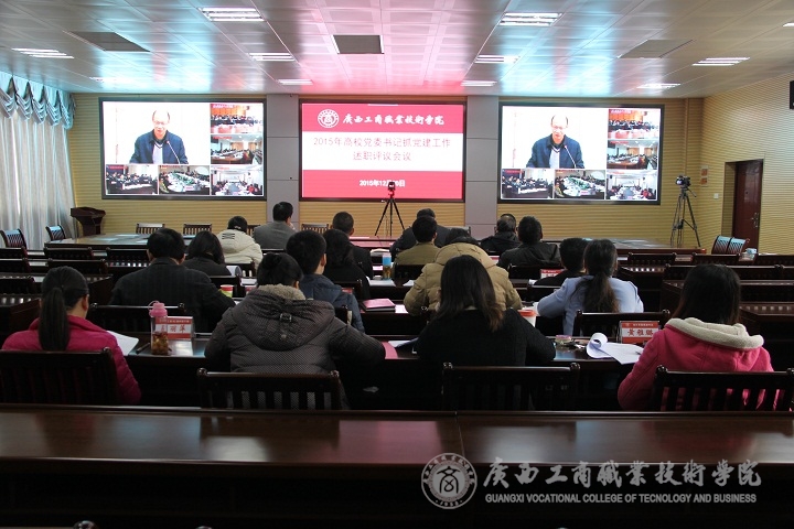 按照上級部門的部署,2015年12月20-21日,我院派出了學院領(lǐng)導、黨務(wù)部門負責人及教職工黨員代表等20人作為評議人員在分會場我院本部教學樓2119視頻會議室參加我區(qū)2015年高校黨委書記抓黨建工作述職評議會議,對全區(qū)46所副廳級以上建制高校的黨委書記述職進行評分。