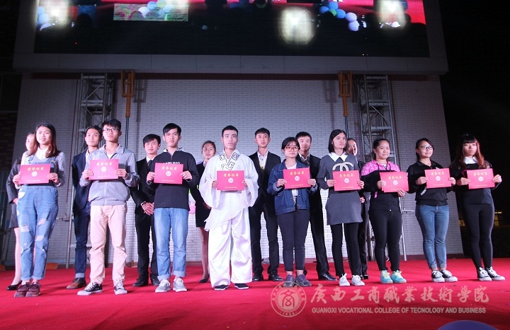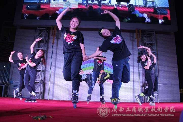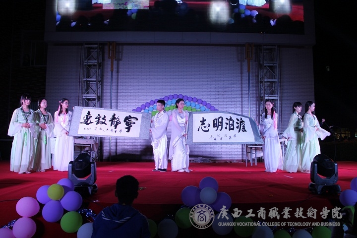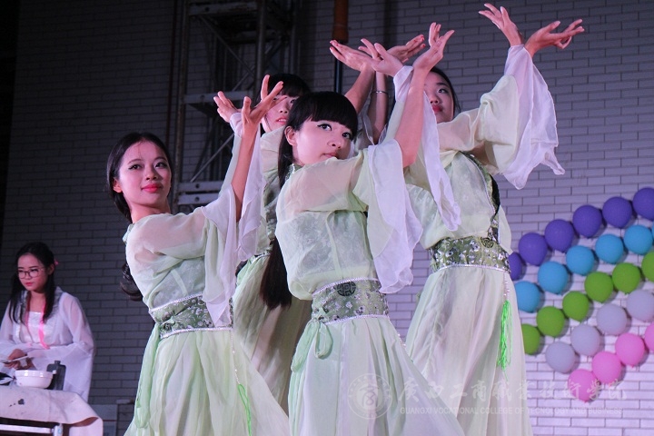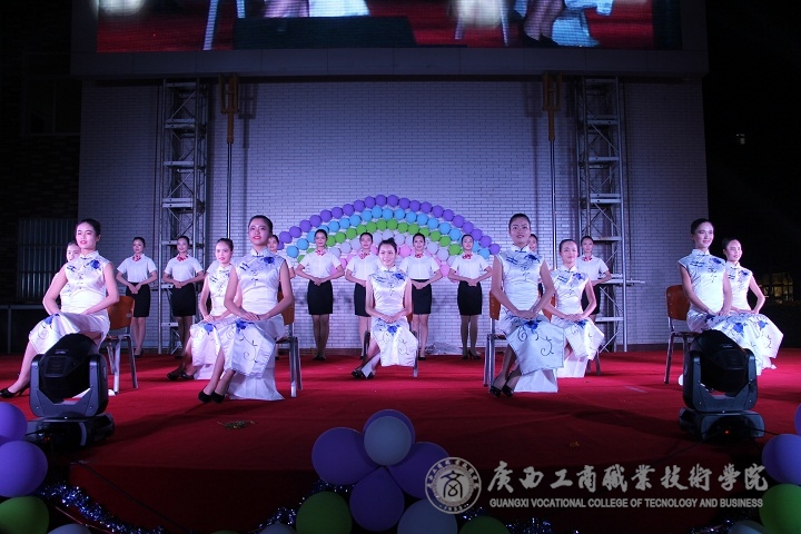 首先由精彩的舞獅子表演為晚會拉開了帷幕,主持人介紹了出席晚會的老師。接著,演奏、合唱、舞蹈、瑜伽、走秀、武術(shù)等12個表演節(jié)目輪番上陣。音樂協(xié)會樂隊演奏的《Pieces+不能說的秘密》動聽的歌喉令人陶醉;街舞社表演的節(jié)目《T.O.KING SHOW》,勁爆動感十足,激情洋溢,點燃了晚會火熱的氣氛;書畫協(xié)會帶來的《蝶飛花舞》中,身著古色古香旗袍的女子,唯美絢麗,隨著悠揚的樂聲翩翩起舞,現(xiàn)場隨即揮筆寫下的毛筆字帖,帶現(xiàn)場觀眾領(lǐng)略了一番中國傳統(tǒng)文化獨特的魅力。輪滑協(xié)會上演了舞蹈《大王叫我來尋山》,可愛搞笑的動作贏得了現(xiàn)場觀眾的喝彩。在節(jié)目期間,廖顯圖書記、陶曉斌老師為2014-2015年度社團(tuán)文化藝術(shù)節(jié)舉辦的競賽中獲獎的團(tuán)體與個人進(jìn)行頒獎。社團(tuán)文化藝術(shù)節(jié)閉幕式晚會節(jié)目以社團(tuán)文化為主題,為我院各學(xué)生社團(tuán)提供了一個集中展現(xiàn)社團(tuán)風(fēng)采的舞臺。