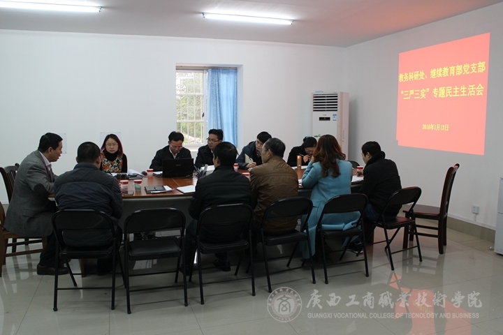 根據(jù)上級(jí)及學(xué)院黨委安排,2016年1月13日下午,教務(wù)科研處黨支部和繼續(xù)教育黨支部在認(rèn)真開(kāi)展會(huì)前學(xué)習(xí),撰寫發(fā)言提綱的基礎(chǔ)上聯(lián)合召開(kāi)了“三嚴(yán)三實(shí)”專題民主生活會(huì)。會(huì)議由教務(wù)科研處副處長(zhǎng)闕勇平教授主持,學(xué)院李維副院長(zhǎng)參加了會(huì)議。教務(wù)科研處黨支部和繼續(xù)教育黨支部除下鄉(xiāng)和請(qǐng)假人員外,共13名黨員參加了民主生活會(huì)。