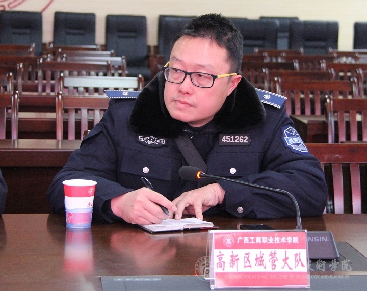 學院后勤管理處處長陳寧春對學院周邊治安管理相關(guān)部門領(lǐng)導表示歡迎,并感謝大家對學院工作的支持與幫助。接著,陳寧春處長向大家匯報了學院2015年以來的安全狀況。