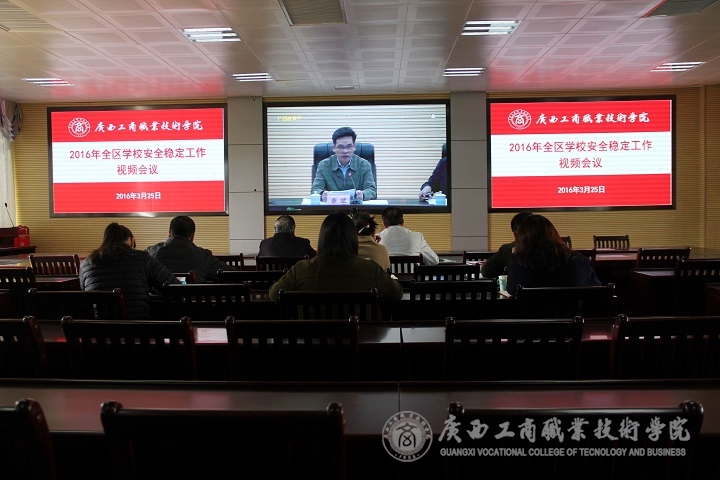 2016年3月25日下午15:00,我院領(lǐng)導(dǎo)和部門代表在校本部2119視頻會議室參加由自治區(qū)教育廳秦斌廳長做重要講話的全區(qū)學(xué)校安全穩(wěn)定工作視頻會議,學(xué)院院長陳杰、副院長李仕欽、相關(guān)部門代表及各系分管學(xué)生工作的黨總支副書記出席了本次視頻會議。