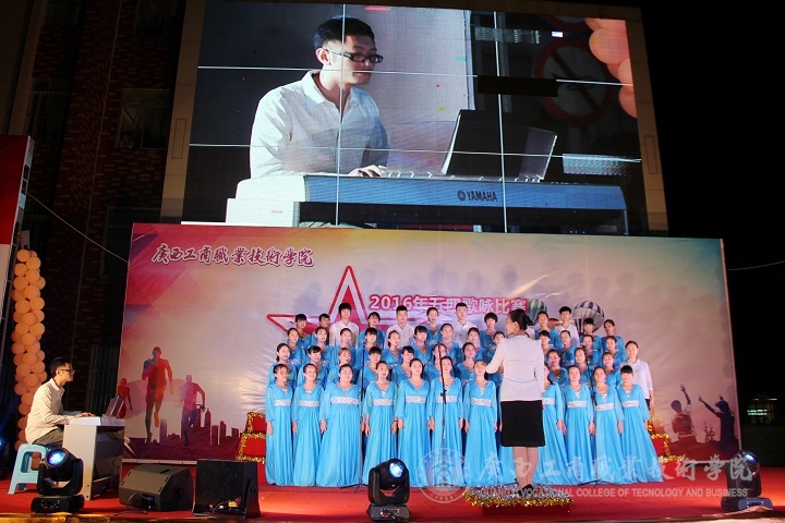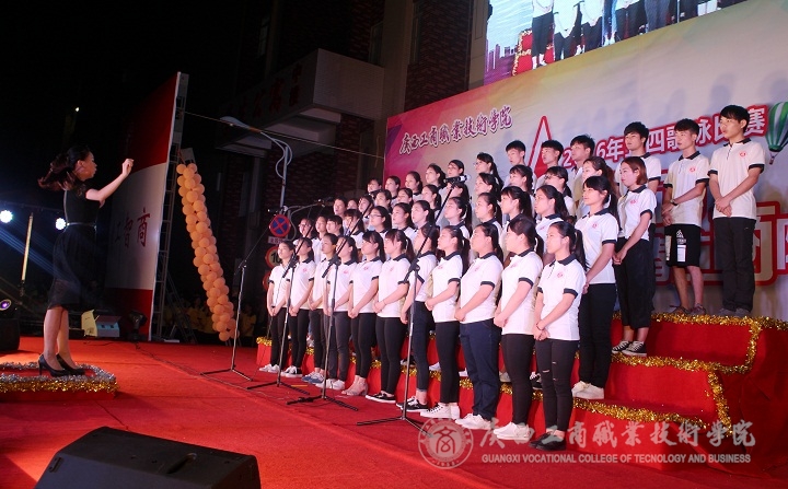 2016年5月6日晚,“唱響五月,青春廣商院”五四歌詠比賽晚會在我院本部LED大屏幕下隆重舉行。學院黨委書記覃武云、學院黨委副書記蒙啟成及學院辦公室、宣傳部、學工部、后勤處、各系相關(guān)負責人和各系師生出席晚會。晚會還特地邀請了外校的音樂老師黃華、鐘麗娟、徐斌、黃金、張勤來作為評委。