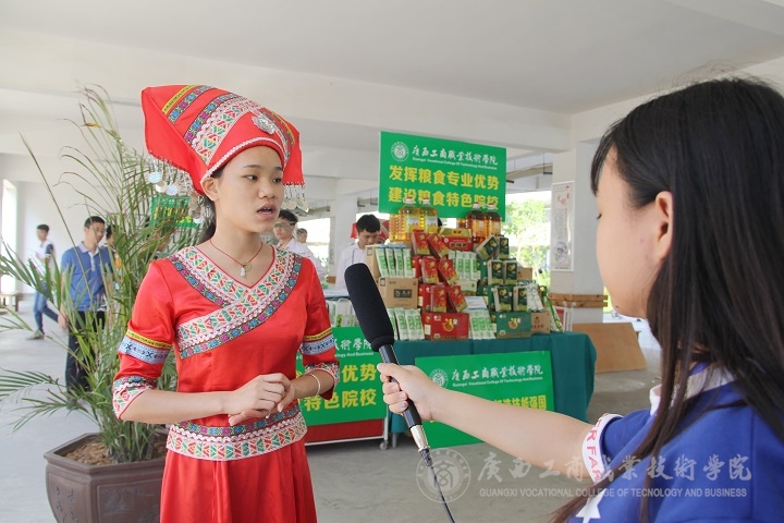 現(xiàn)場還有財信系廣告與設(shè)計、食品檢測專業(yè)展出的糧食加工與包裝設(shè)計作品展。食品檢測專業(yè)的同學(xué)向大家展示了既營養(yǎng)又安全的面包、紅酒、餅干,廣告與設(shè)計專業(yè)的同學(xué)向大家展示了以五谷雜糧為主要材料的圖畫。尤具特色的是:活動中呈現(xiàn)的全部作品都是由學(xué)生們親手制作?,F(xiàn)場接受采訪的同學(xué)告訴記者,同學(xué)們參加此次活動是為了響應(yīng)國家的號召,展示我院食檢專業(yè)的技能特色,她們表示:廣西區(qū)很多院校的職業(yè)技能展示以及發(fā)展的程度,跟國際上還有一定的差距,大家決心要繼續(xù)努力,將食檢專業(yè)的技能發(fā)展得更好。