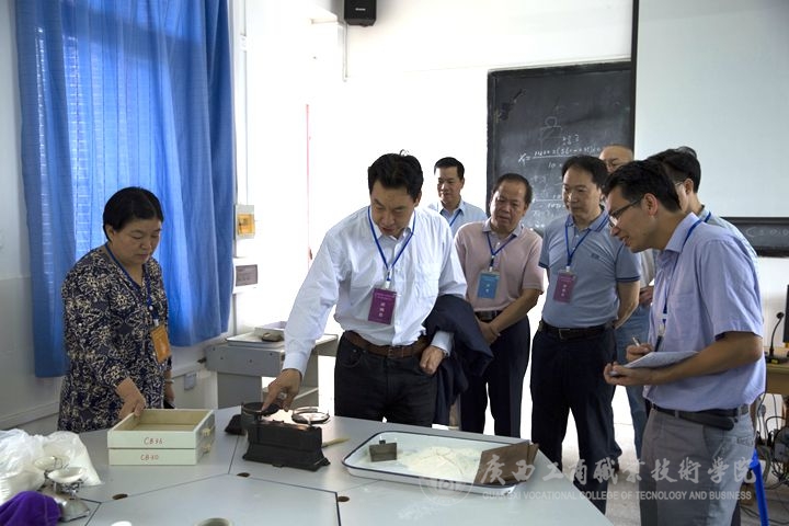 5月18日,國家糧食局中國糧食研究培訓中心唐柏飛副主任和培訓處常曉明處長、自治區(qū)糧食局人事處韋尚英處長和唐鴻斌調(diào)研員、我院李仕欽副院長和李維副院長等一行領導專門來到學院東校區(qū)巡視糧油質(zhì)量檢驗員鑒定工作。首先,唐副主任巡視了理論考試考場。他詳細了解了理論考試流程,檢查考場情況,并查看了考場視頻監(jiān)控中心。針對糧食行業(yè)特有工種職業(yè)技能資格培訓及鑒定的理論考試和實操考核鑒定工作,唐副主任提出了四點要求:一是堅持公開、公平、公正原則,確??己说墓帕?;二是以服務學員為中心,精心安排各項工作,確保學員有所獲;三是加強校企合作,增加交流,提升鑒定站整體業(yè)務水平;四是時刻保持嚴謹細致的工作作風,做好各項服務工作。