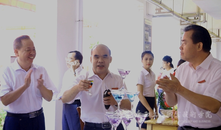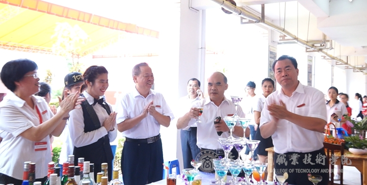 覃武云書記、陳杰院長(zhǎng)、蒙啟成副書記、李仕欽副院長(zhǎng)、黃永蓬副廳級(jí)調(diào)研員等一行人先后來(lái)到就業(yè)洽談會(huì)現(xiàn)場(chǎng)、學(xué)生畢業(yè)展演現(xiàn)場(chǎng)、教學(xué)成果展現(xiàn)場(chǎng)與用人單位、參展師生進(jìn)行了親切友好的交談。在學(xué)生的畢業(yè)設(shè)計(jì)展,覃武云書記豎起了大拇指,為學(xué)生們漂亮的參展作品點(diǎn)贊。在西餐展臺(tái),覃武云書記舉起學(xué)子們現(xiàn)場(chǎng)調(diào)好的雞尾酒向現(xiàn)場(chǎng)師生問(wèn)好。在板鞋教學(xué)展演現(xiàn)場(chǎng),他甚至調(diào)皮的穿起了板鞋,與其他老師玩起了板鞋游戲。