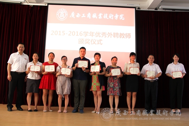 此次評選活動經(jīng)過各系部推薦、教務(wù)科研處、黨委宣傳部、評估督導(dǎo)室審核、院長辦公會審議,學(xué)院公示等環(huán)節(jié),共評選出陳繼平、李影等10名教師,榮獲廣西工商職業(yè)技術(shù)學(xué)院“2015-2016學(xué)年優(yōu)秀外聘教師”榮譽稱號。