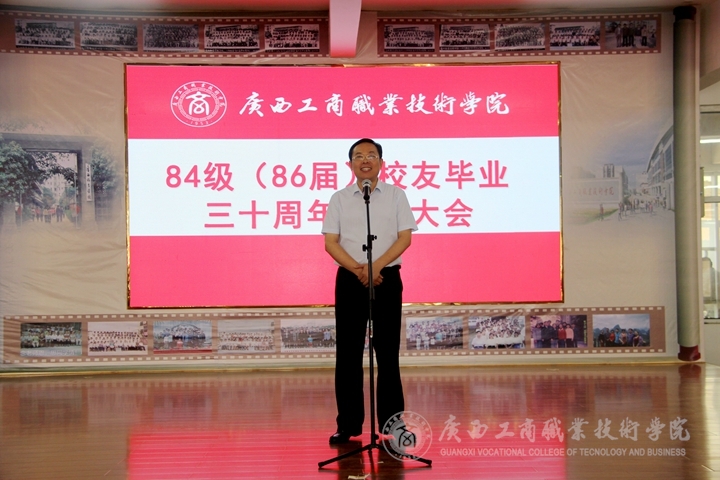 2016年6月26日上午, 我院1984級(jí)校友們從四面八方匯聚母校廣商院,參加在我院校本部文體館一樓舉行的84級(jí)(86屆)校友畢業(yè)三十周年紀(jì)念大會(huì)。學(xué)院黨委書記覃武云、院長(zhǎng)陳杰、副院長(zhǎng)李維、有關(guān)中層干部、84級(jí)校友代表、時(shí)任班主任老師及在校學(xué)生代表200人參加了此次紀(jì)念大會(huì),會(huì)議由李維副院長(zhǎng)主持。