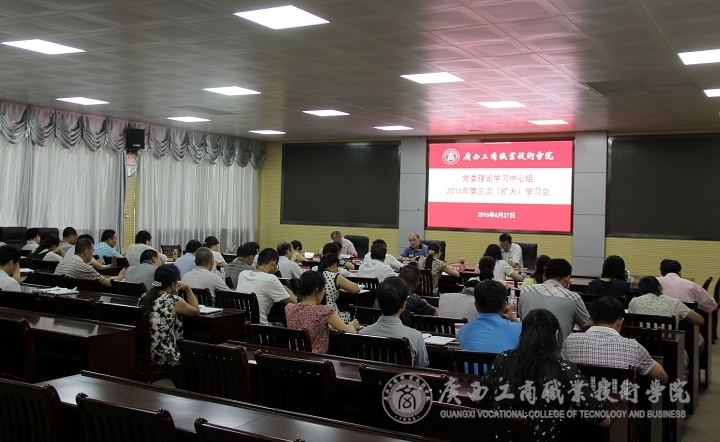 2016年6月27日上午9:00,我院于校本部教學(xué)樓2119會(huì)議室召開(kāi)學(xué)院黨委理論學(xué)習(xí)中心組2016年第三次(擴(kuò)大)學(xué)習(xí)會(huì)。學(xué)院黨委書(shū)記覃武云、院長(zhǎng)、黨委副書(shū)記陳杰、黨委副書(shū)記、紀(jì)委書(shū)記蒙啟成、副院長(zhǎng)李仕欽、副院長(zhǎng)李維、副廳級(jí)調(diào)研員黃永蓬以及各部門(mén)代表出席了本次會(huì)議。本次會(huì)議由覃武云書(shū)記主持。