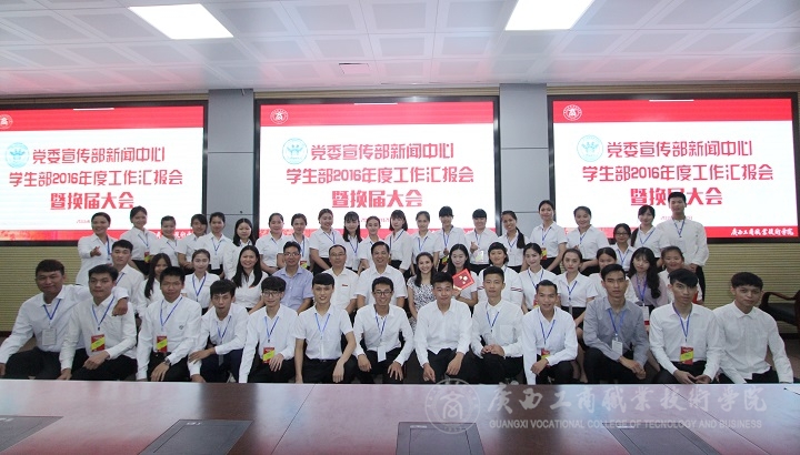 2016年7月12日下午五點,我院在校本部2119視頻會議室舉辦“新聞中心學生部2016年度工作匯報會暨換屆大會?!睂W院黨委副書記蒙啟成、黨委宣傳部部長韋勝強、現(xiàn)教中心主任、黨委宣傳部副部長林雯、新聞中心指導老師、新聞中心學生部全體成員參加了本次大會。會議由新聞中心播主部宋珮瑤主持。