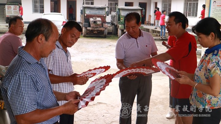 (李朝鋒書記向村干部介紹廣商院文化扇的來歷)