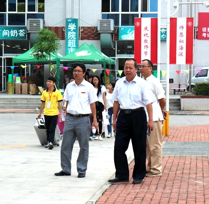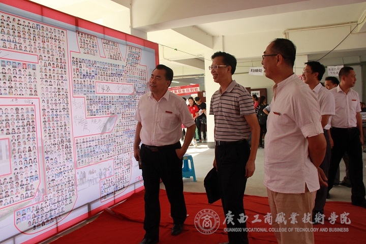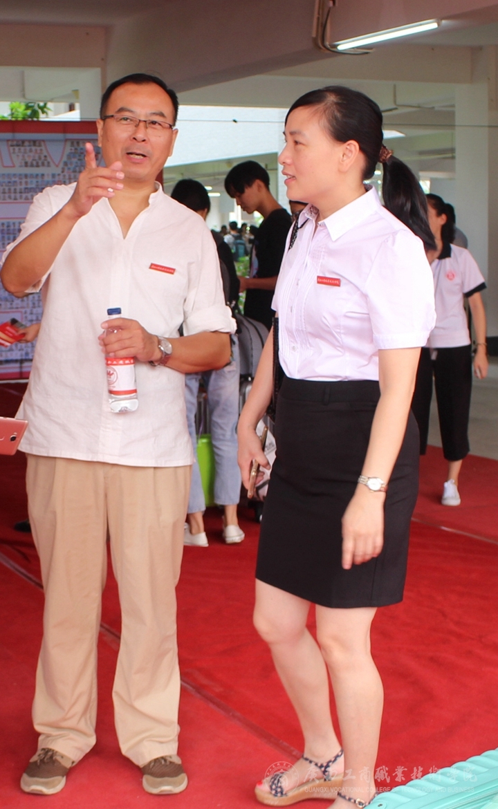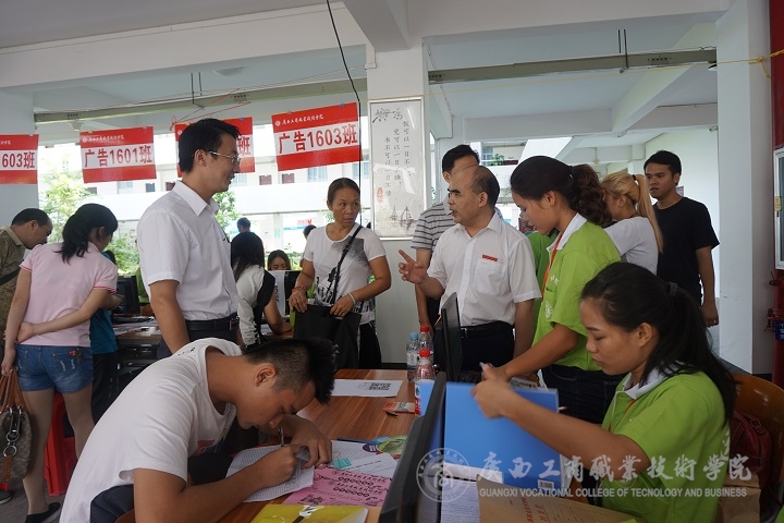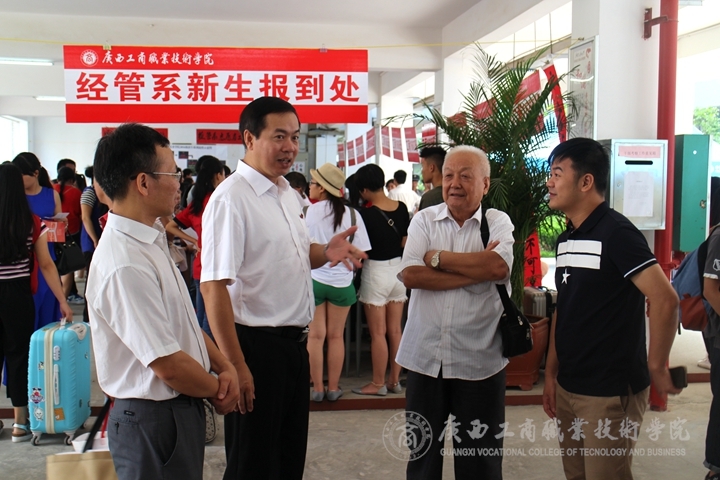 2016年9月8日上午8時,廣商院迎新工作正式開始。學(xué)院黨委書記覃武云、院長陳杰、黨委副書記蒙啟成、副院長李仕欽、副院長李維等學(xué)院領(lǐng)導(dǎo)紛紛來到教學(xué)樓架空層新生注冊現(xiàn)場,親自指導(dǎo)迎新工作。下午3時許,自治區(qū)糧食局副巡視員、人事處處長韋尚英同志也來到廣商院,在學(xué)院領(lǐng)導(dǎo)的陪同下,巡視我院迎新工作,對我院新生報到、注冊、入住等具體工作予以關(guān)懷指導(dǎo)。