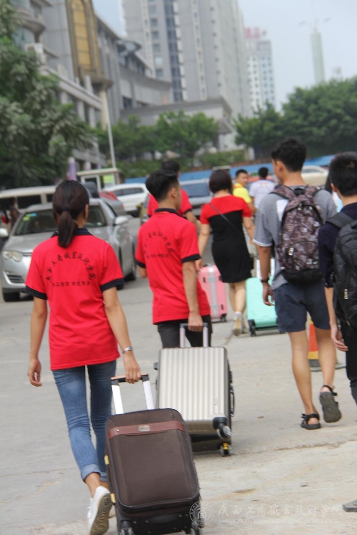 學(xué)院考慮到新生們來學(xué)校時乘車難的問題,特地在南寧站、火車東站、埌東站、江南客運站、金橋客運站、安吉客運站、西鄉(xiāng)塘客運站七個站設(shè)立了新生接待點。接送新生們,為他們提供暖心的服務(wù),確保能夠安全到校。